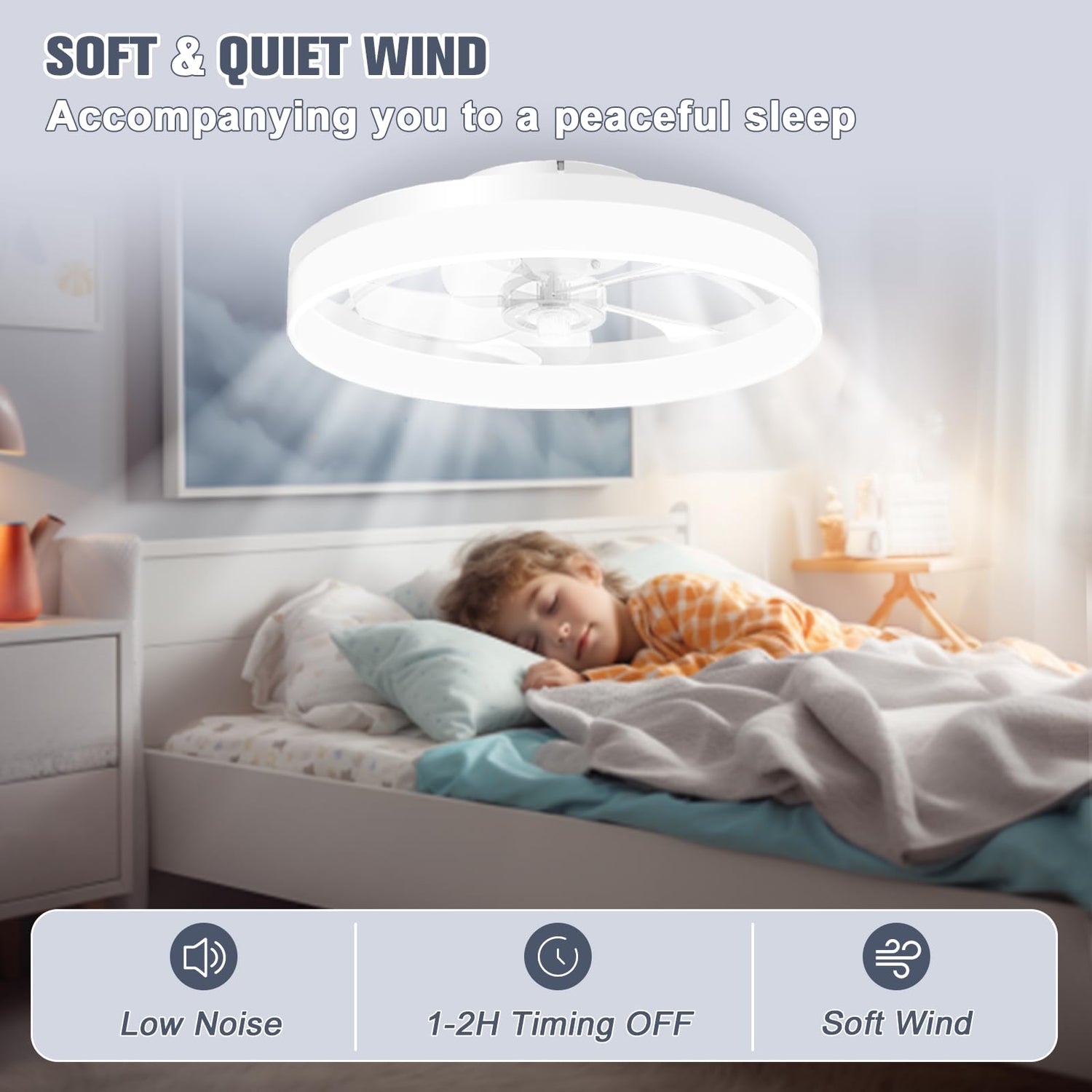 VOLISUN Low Profile Ceiling Fans with Lights and Remote, 19.7in Fandelier Ceiling Fan Flush Mount, 3000K-6500K Smart Bladeless LED Fan Light, White Modern Ceiling Fans with Lights for Bedroom