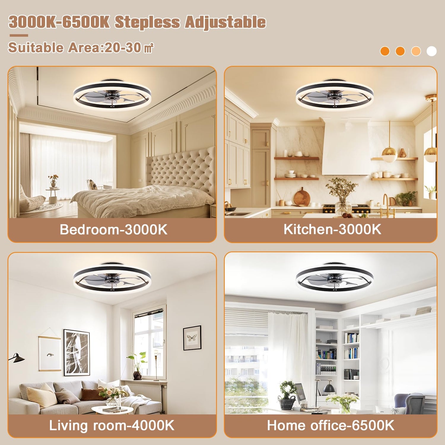- 【6 Wind Speed & Quiet Fan】This low profile ceiling fan provides six distinct speed options, enabling you to select the perfect airflow intensity for your comfort preferences. Moreover, this modern ceiling fan operates quietly, ensuring a tranquil and serene environment. Whether you prefer a gentle breeze or a more robust airflow, this flush mount ceiling fan offers versatile speed settings while minimizing noise disturbance.