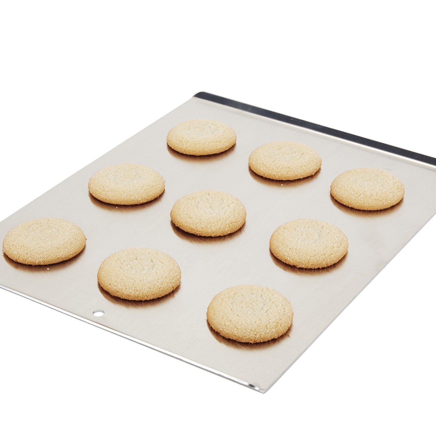 - INNOVATIVE DESIGN: This Vollrath cookie sheet has two curved edges and two flat edges to make it the perfect aluminum baking sheet as you can easily grip it to slide cookies off to cool.