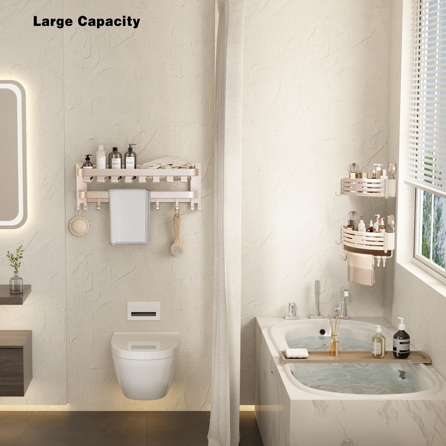 VOLPONE Corner Shower Caddy Suction Cup Shower Shelf Corner No Drilling Bathroom Shower Organizer Storage Rack Adhesive with Towel Bar Hooks(2-Pack, Ivory)