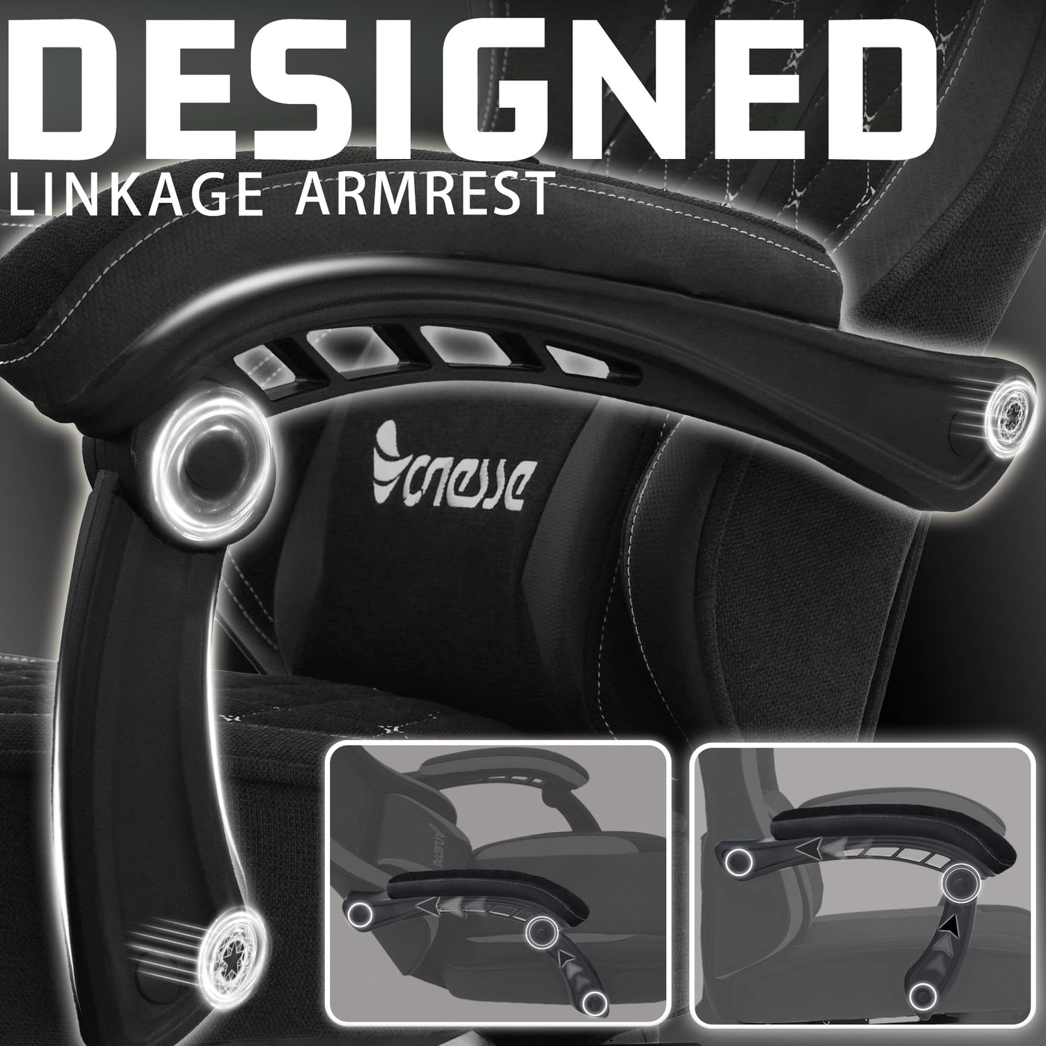 - Gaming Chair with Highly Breathable properties:The surface of the Vonesse gaming chair is covered with a layer of soft and breathable fabric. You can sit on it comfortably for a long time without feeling sweaty or damp. In addition, the fabric has good elasticity and can provide better support for your body.