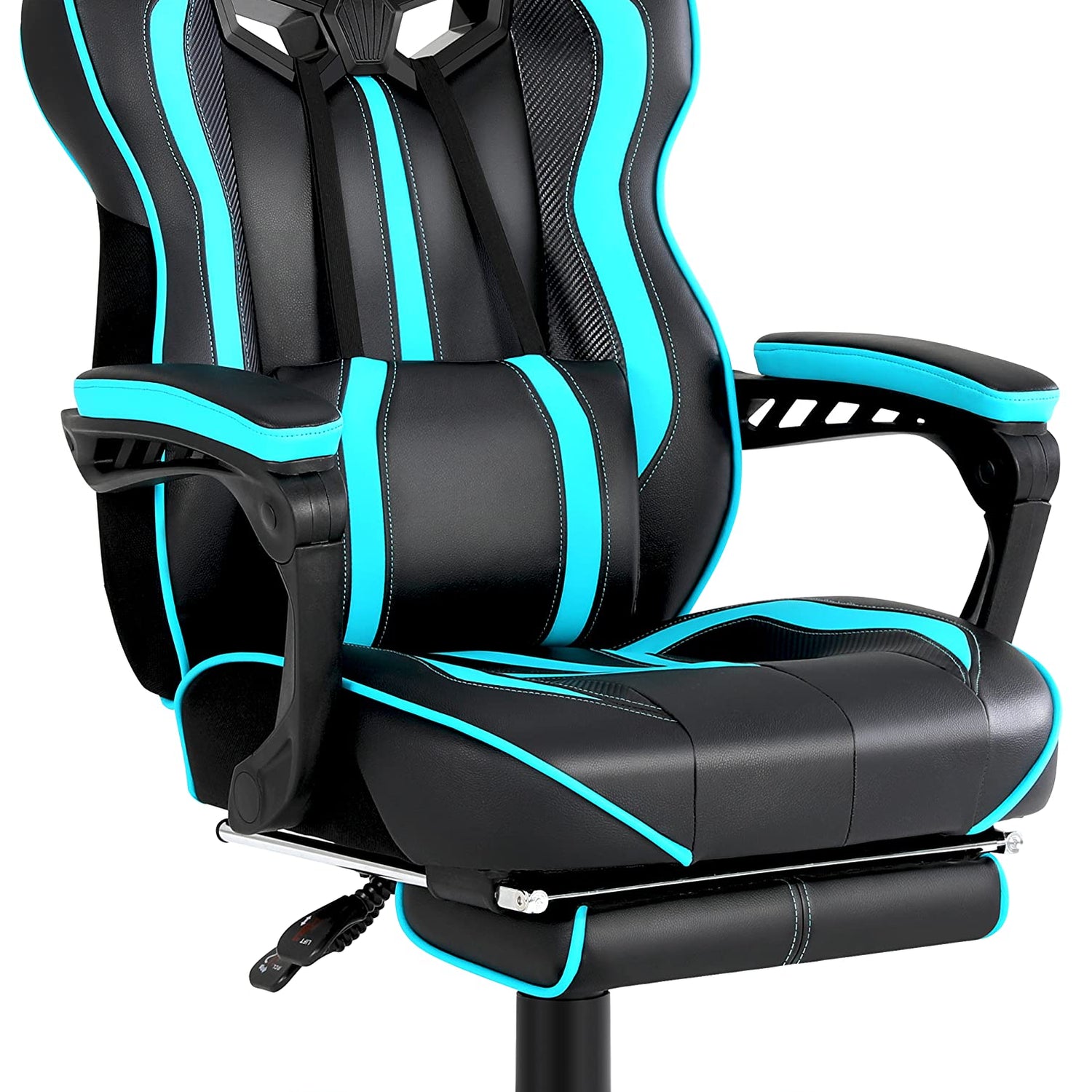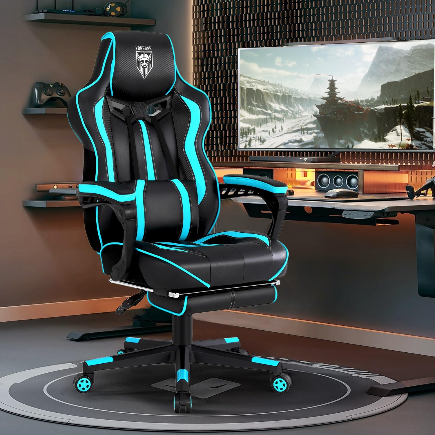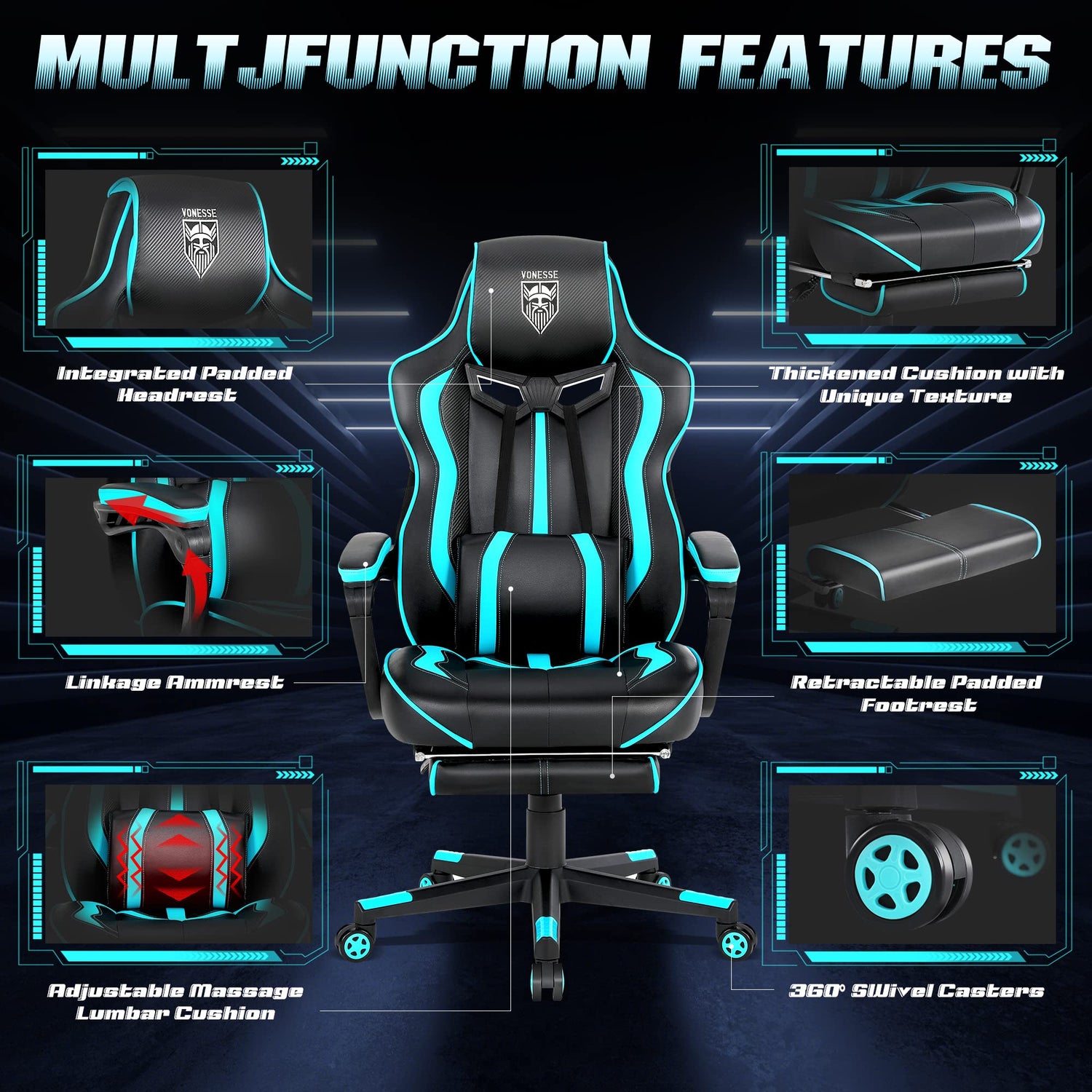 Vonesse Gaming Chair for Adults Gaming Chairs with Footrest Reclining Computer Gaming Chair for Heavy People Gamer Chair Big and Tall Ergonomic Game Chair Racing Chair with Lumbar Pillow(Teal/Cyan)