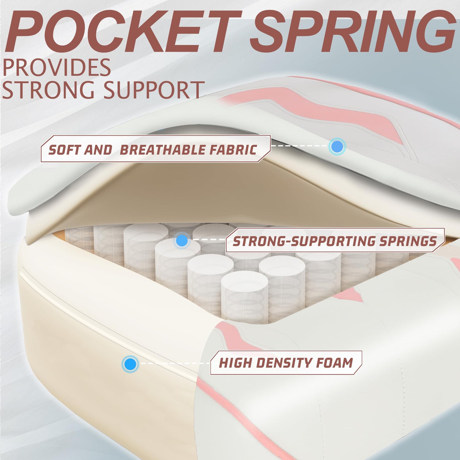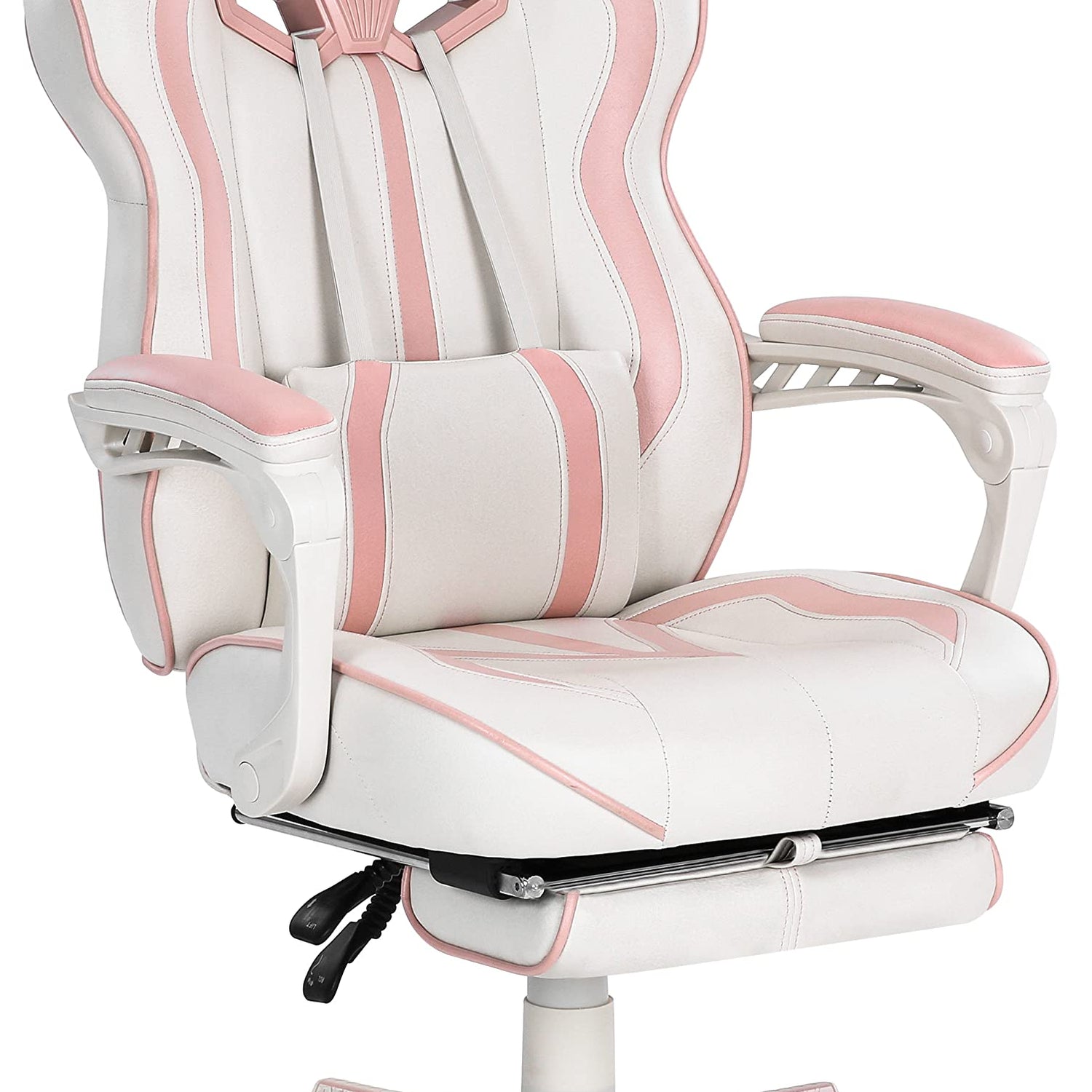 Vonesse Pink Gaming Chair for Girls, Pink Computer Gaming Chairs for Adults, Reclining Gamer Chair with Footrest with Massage, Ergonomic Home Office Gaming Chair High Back (White/Pink)