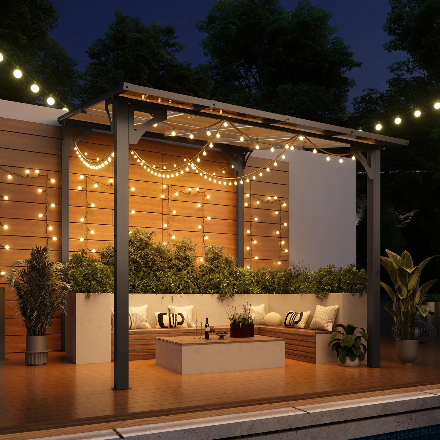 - Stable and Solid: The aluminum frame and triangular metal structure greatly ensure the durability, stability and sturdiness of our patio pergola. Note that it is wall-mounted and only install it on walls can it function well.