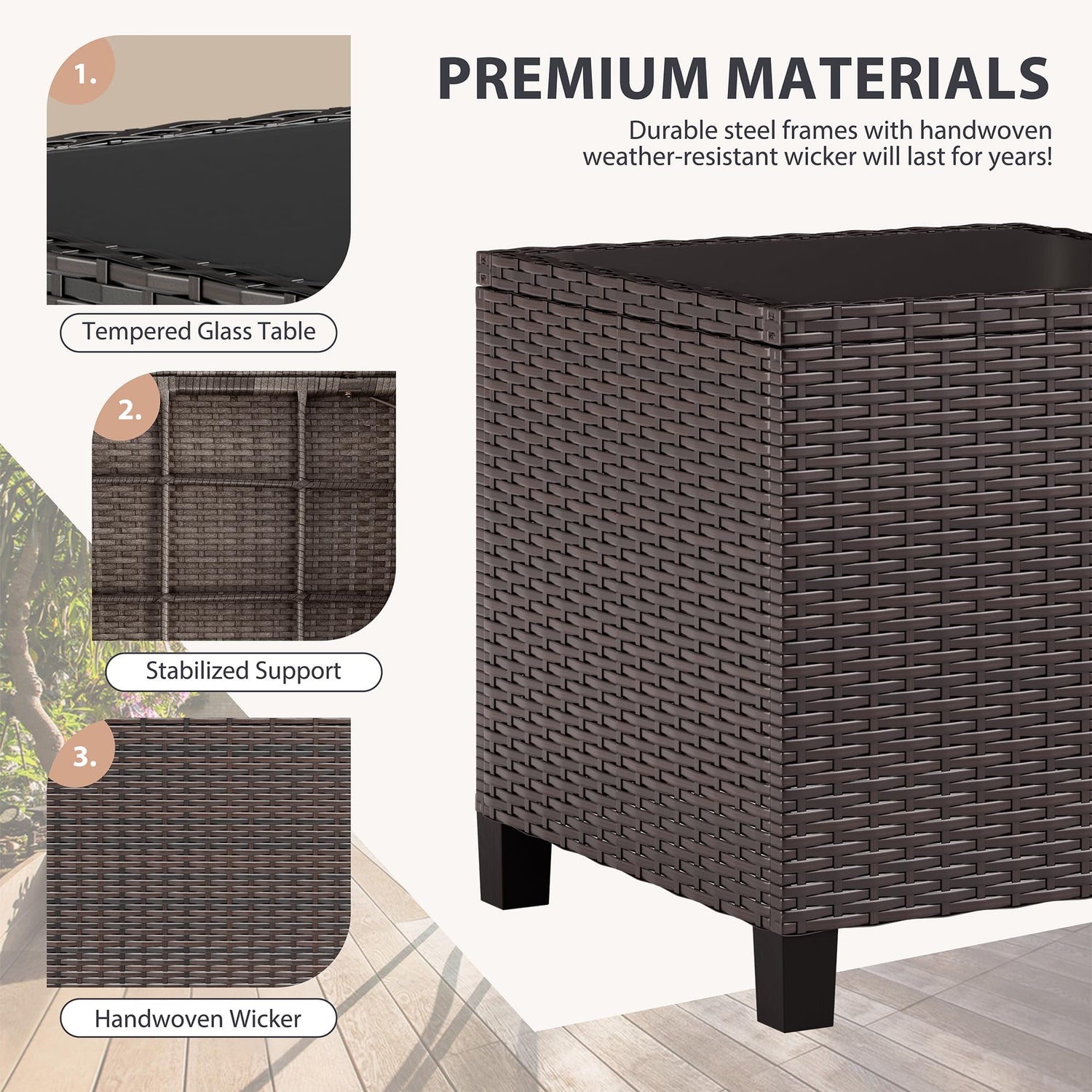 - Advanced Rattan and Frame: Made of commercial-grade hand woven PE wicker and strong powder-coated steel frame, this 3-piece patio set is sturdy and durable; Rust-proof, UV-resistant and waterproof feature also guarantee long lasting use.