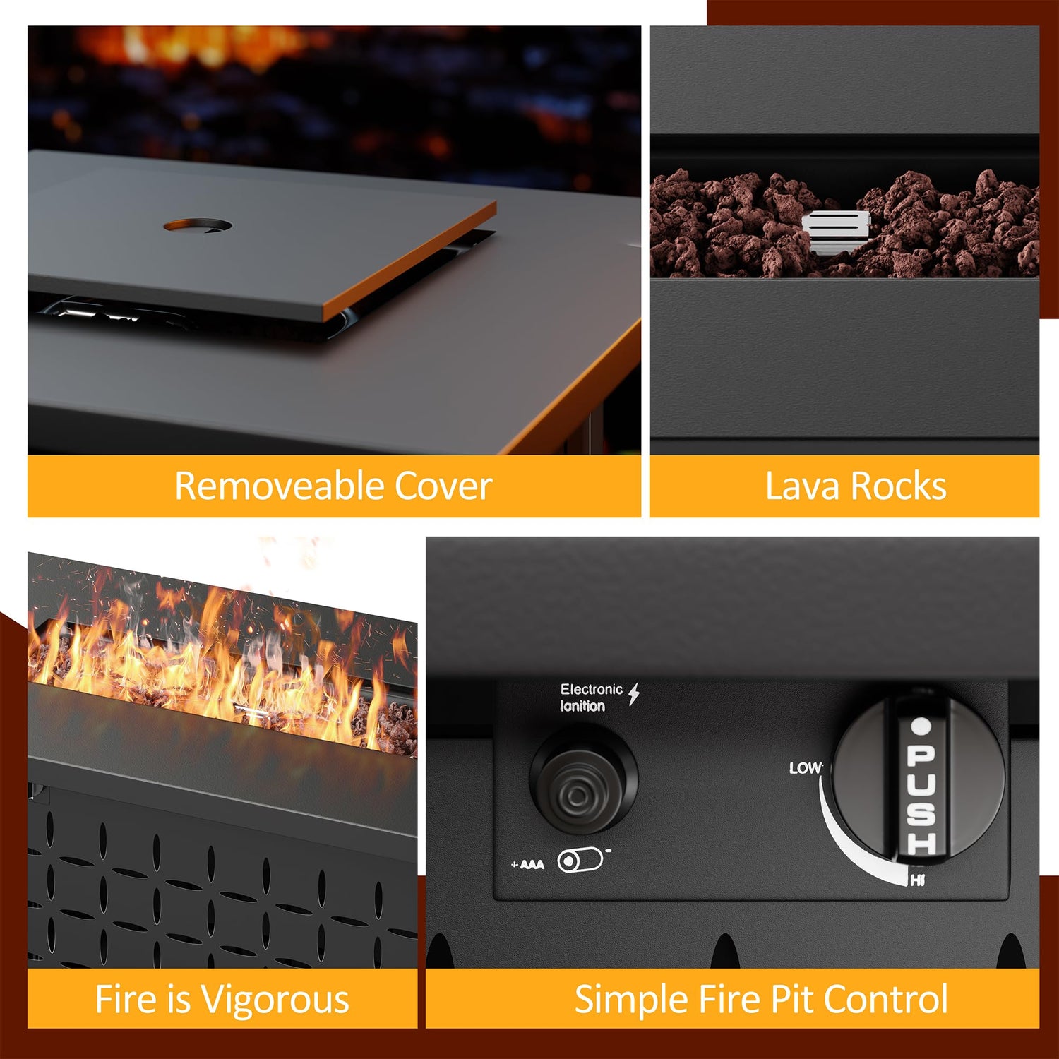 Vongrasig 43 inch Gas Fire Pit Table, 50,000 BTU Outdoor Rectangular Propane Firepit Table with Lid, Lava Rock, 2 in 1 Firepit Table for Outside, Patio, Deck, Garden, Backyard