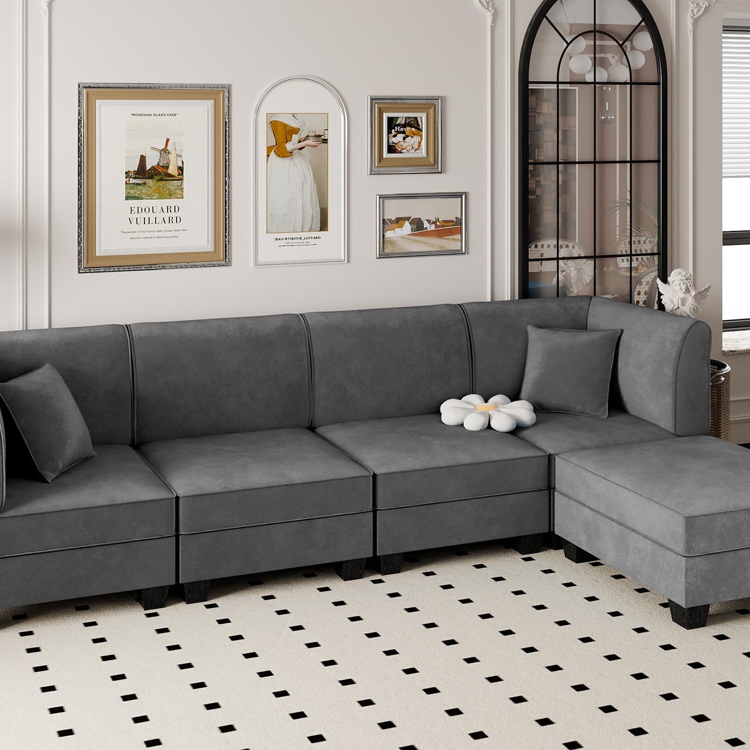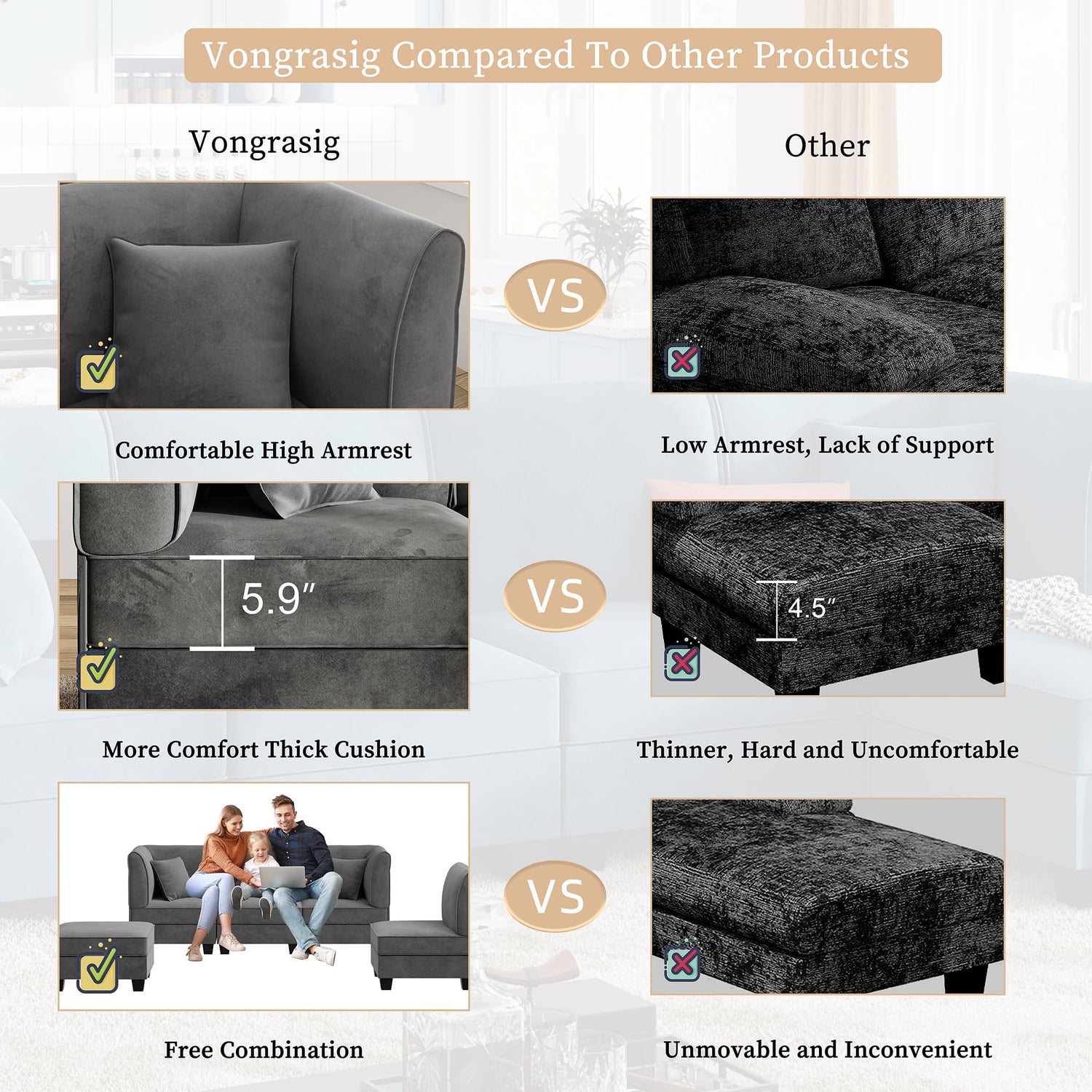 - Sturdy and Comfortable: This modular sectional sofa is based on solid wood. With 5.9” thick seat cushions which is more thicker than other cushion could offer you more comfortable, you will have the nice and firm feeling and never have to worry about sinking in. The more you sit in it the better feeling you will get.