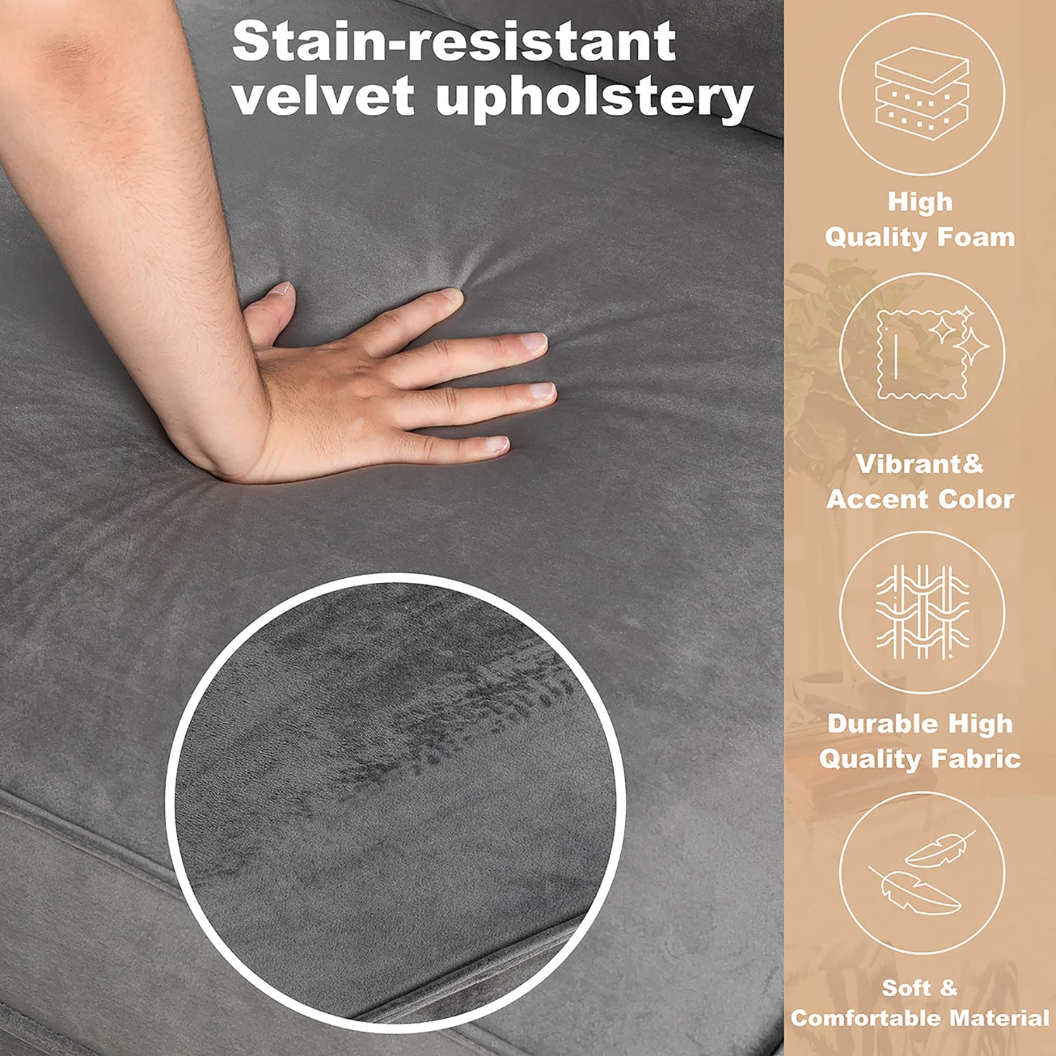 - Modern Sofa Design: Featuring velvet fabric, simply and clean curves and three colors to be choose which can well match other furniture. What's more, its convertible design 116” long seat can make you enjoy your leisure time well, relax in the living room all day with your family or friends.