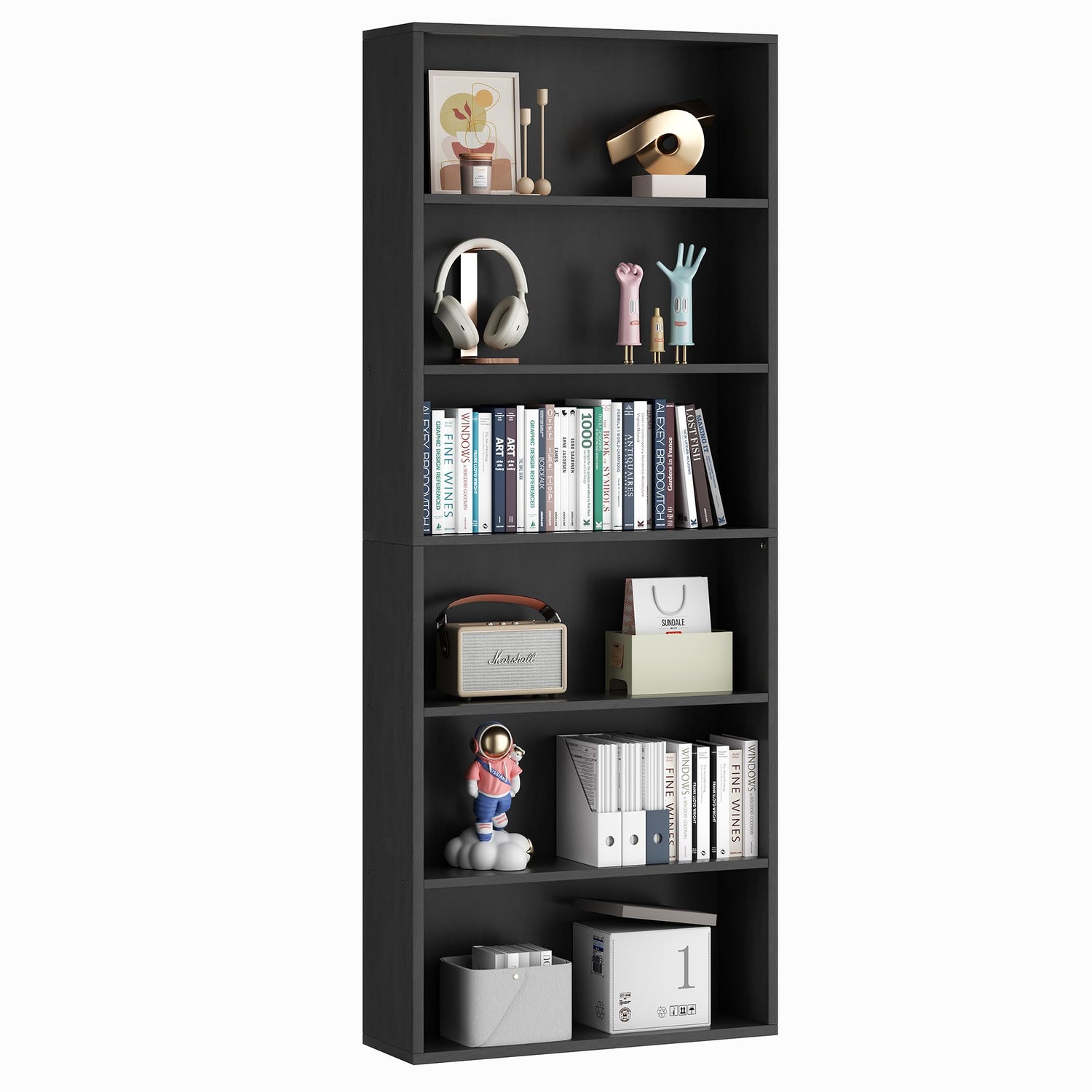 Vongrasig 6-Tier Open Bookcase and Bookshelf, Floor Standing Wood Display Storage Shelves 71 Inch Tall Bookcase Home Decor Furniture for Home Office, Living Room, Bed Room, Black