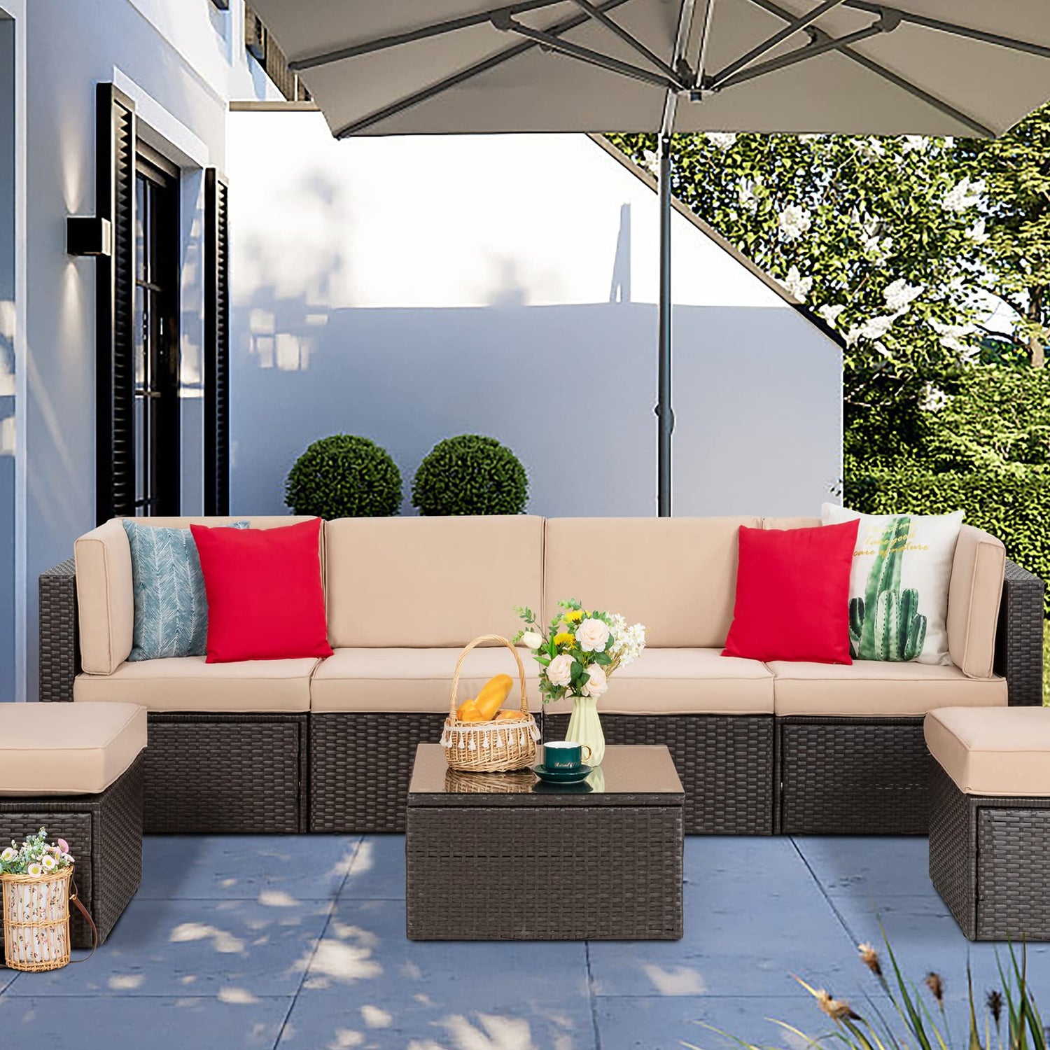 - Free Combination: Each part of this 7 piece patio furniture could be used separately, easily allowing to be combined into different configurations for seating or lying according to your needs. Ideal for outdoor patio, porch, backyard, balcony, garden and poolside.