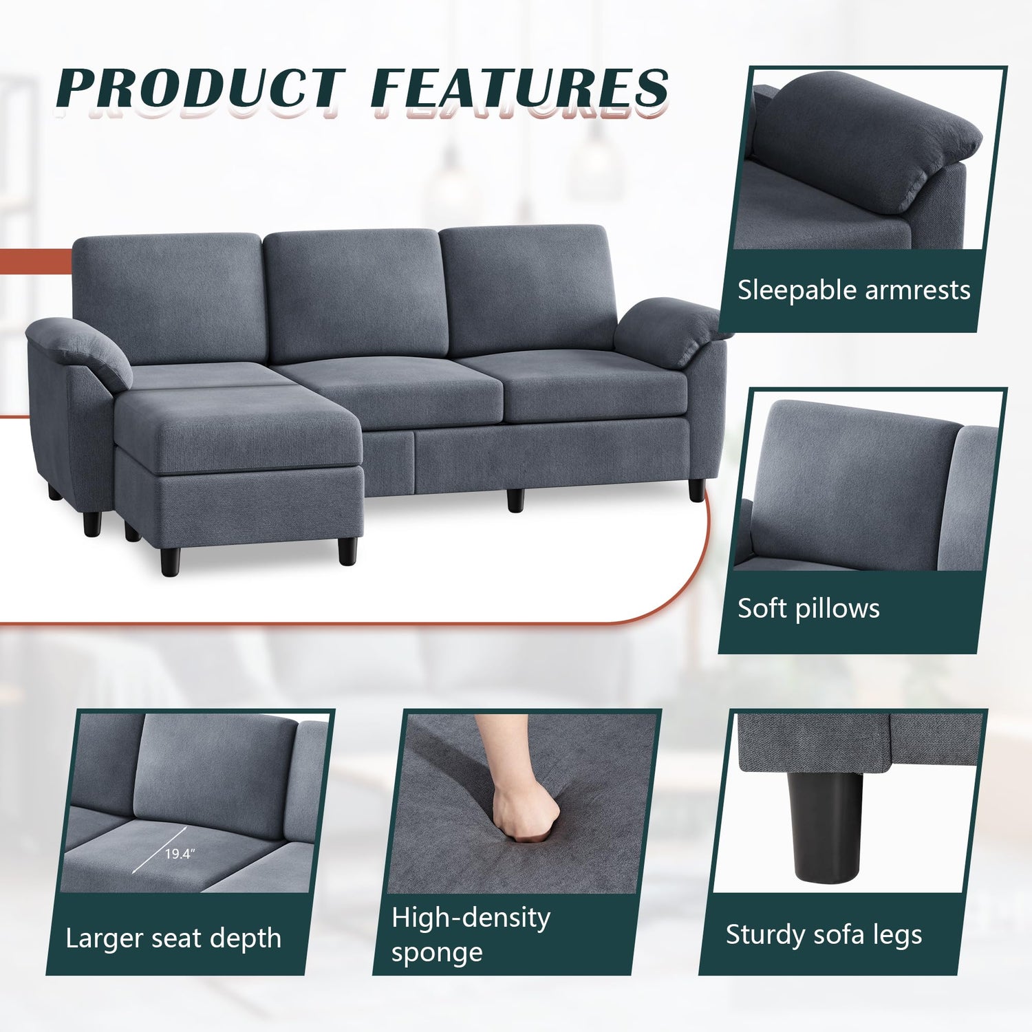 - Comfortable Sectional Sofa: The sofa is made of modern linen fabric with a hardwood frame as the basic structure. The linen fabric is comfortable and not easy to pilling, fading. Soft cushions and a reinforced back, eases the rebound, providing strong comfort.