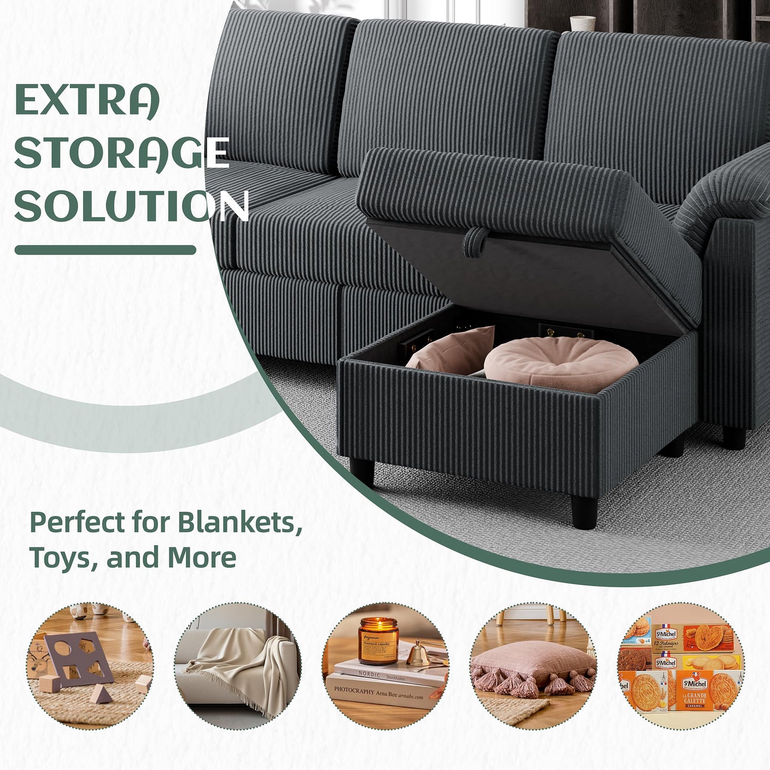 - Multi-purpose Design: This small space reversible sectional sofa with a movable ottoman, you can place square ottoman on left or right of sectional sofa to fit against the wall in your living room. You can use the variability of sofa to change the style of the room at any time.