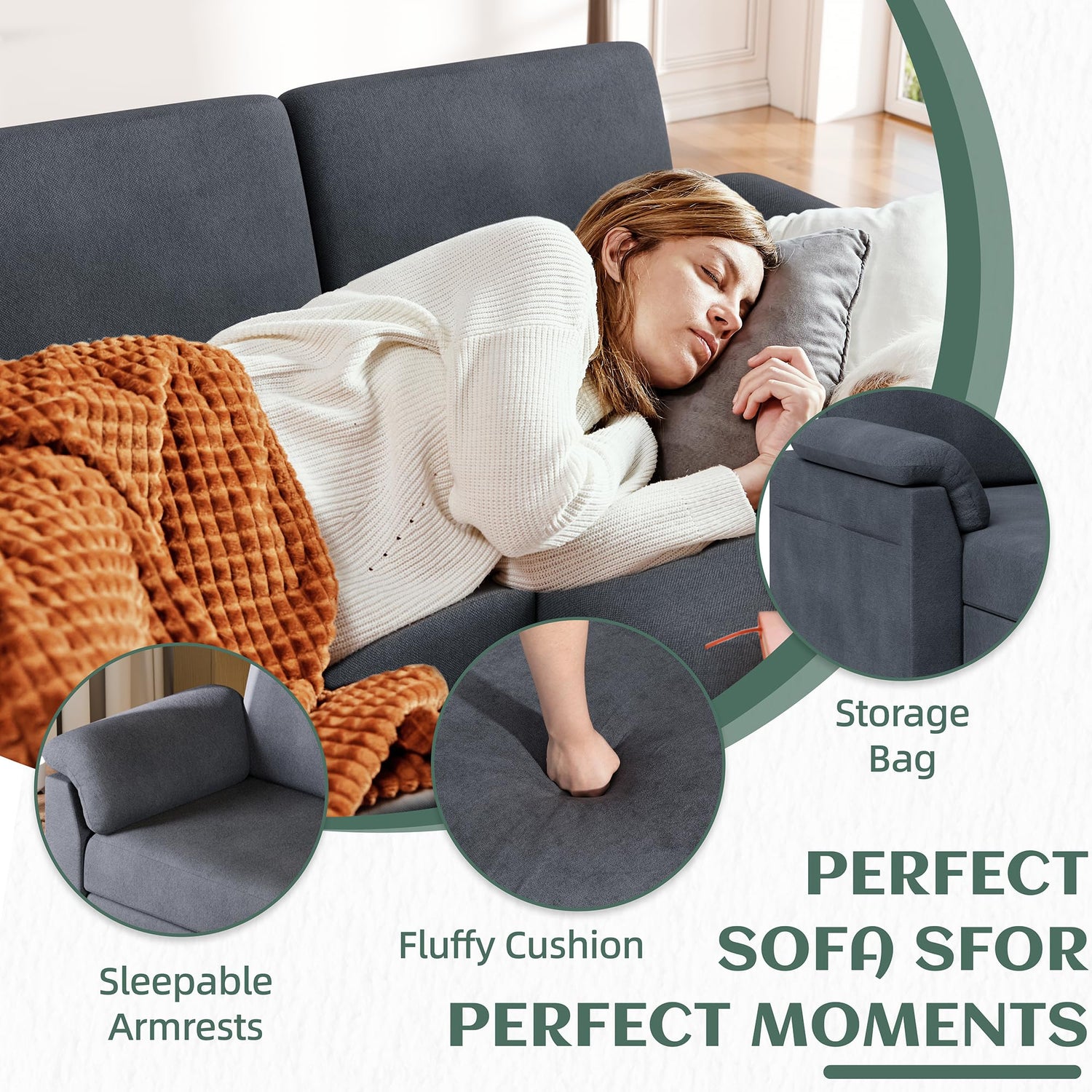 - Comfortable Sectional Sofa: The sofa is made of modern linen fabric with a hardwood frame as the basic structure. The linen fabric is comfortable and not easy to pilling, fading. Soft cushions and a reinforced back, eases the rebound, providing strong comfort.