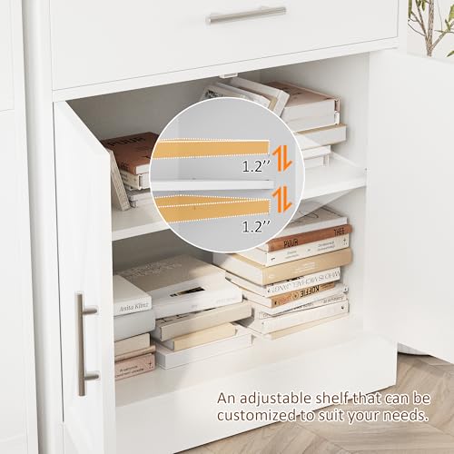- AMPLE STORAGE: This sideboard buffet cabinet provides versatile storage space with 1 drawer, 2 doors to neatly organize your dining essentials, dishes, cutlery or decor items. The shelf inside is 3-level adjustable to meet various storage needs.