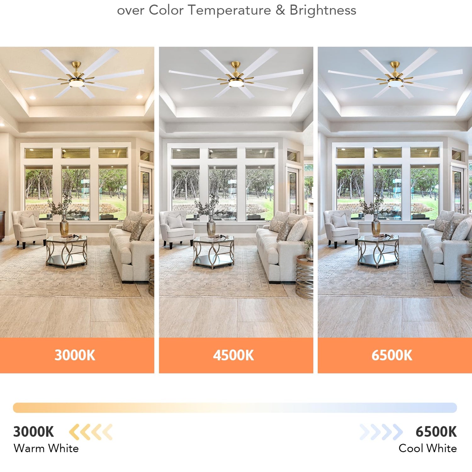 - Customizable Lighting- Our 72 inch ceiling fans with lights are dimmable (10%-100%) and adjustable color temperature (3000K-6500K), allowing you to find the ideal lighting for different occasions. (Note: The remote control can set the night light function)