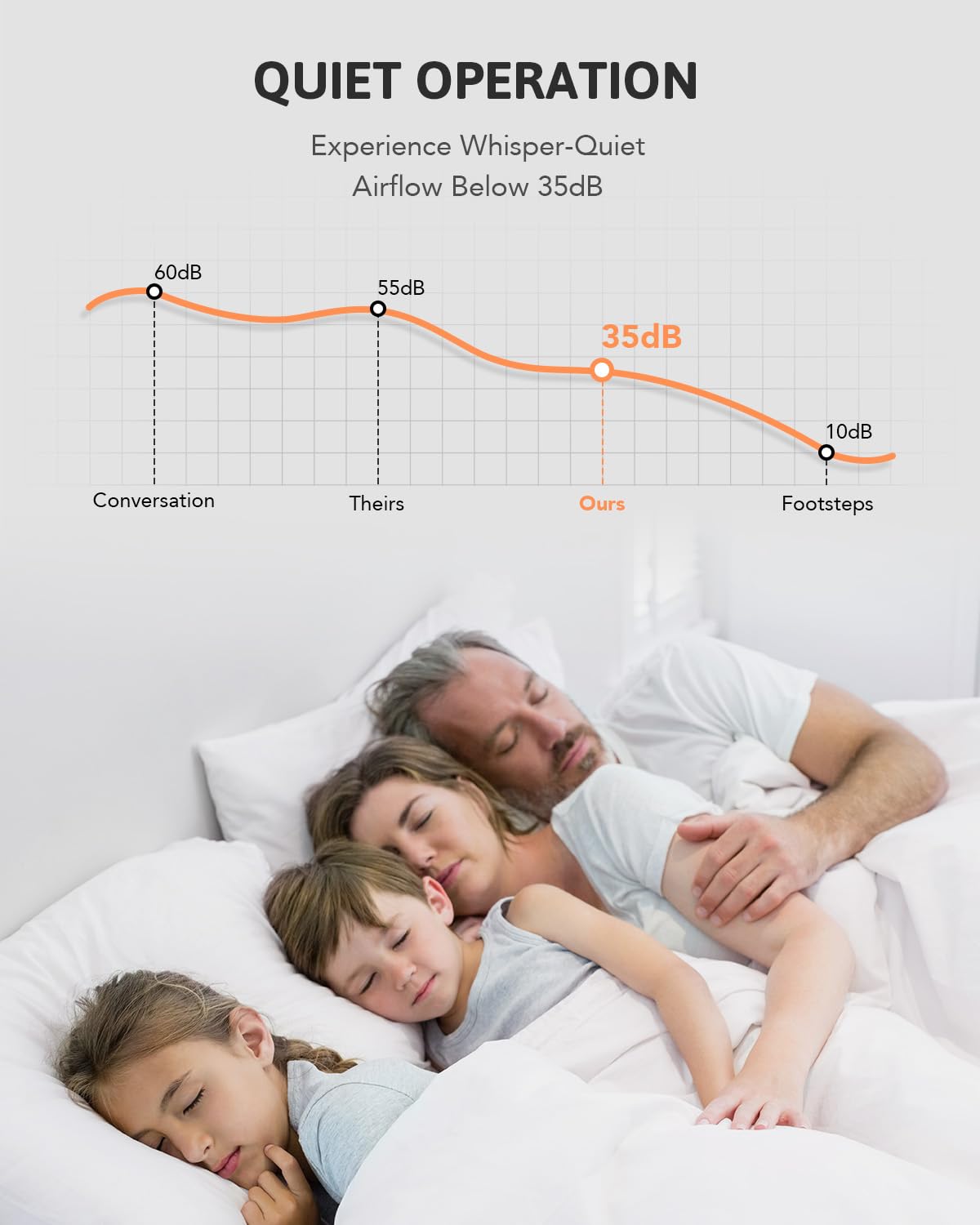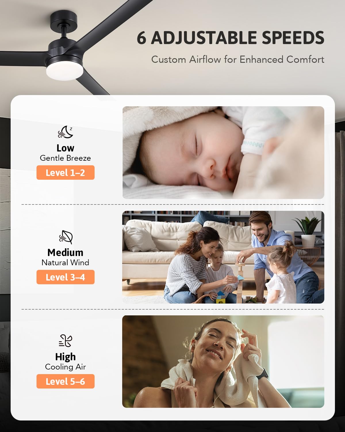 - Ultra-Quiet Experience: This ceiling fan operates at less than 35dB, providing a quiet and comfortable environment ideal for restful sleep and a peaceful home. It's particularly suitable for families with babies or the elderly. Super quiet, only the wind