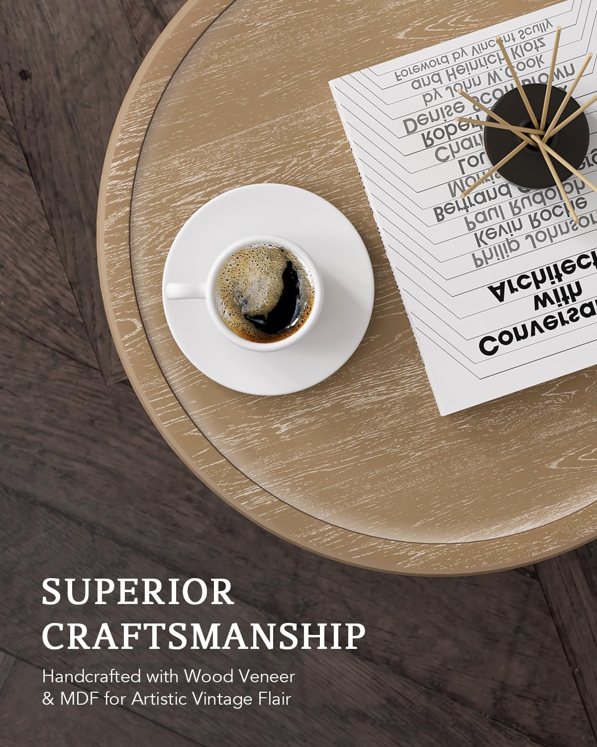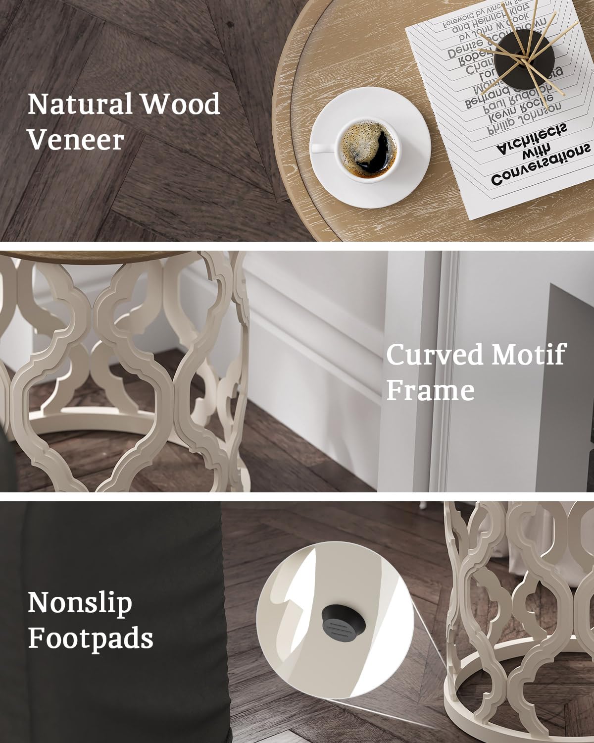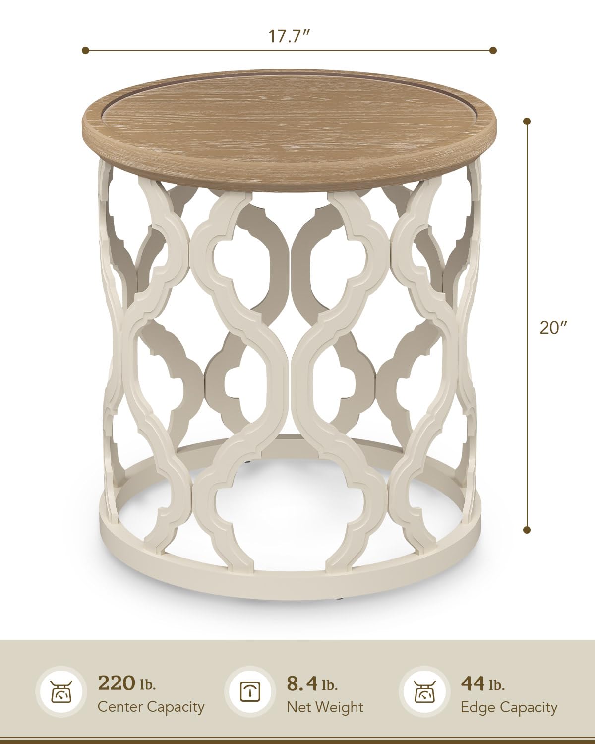 - Modern Farmhouse Decor: Vonluce's 17.7'' round end table blends French country charm with modern design and functionality, easily complementing any home decor styles in both living rooms and bedrooms