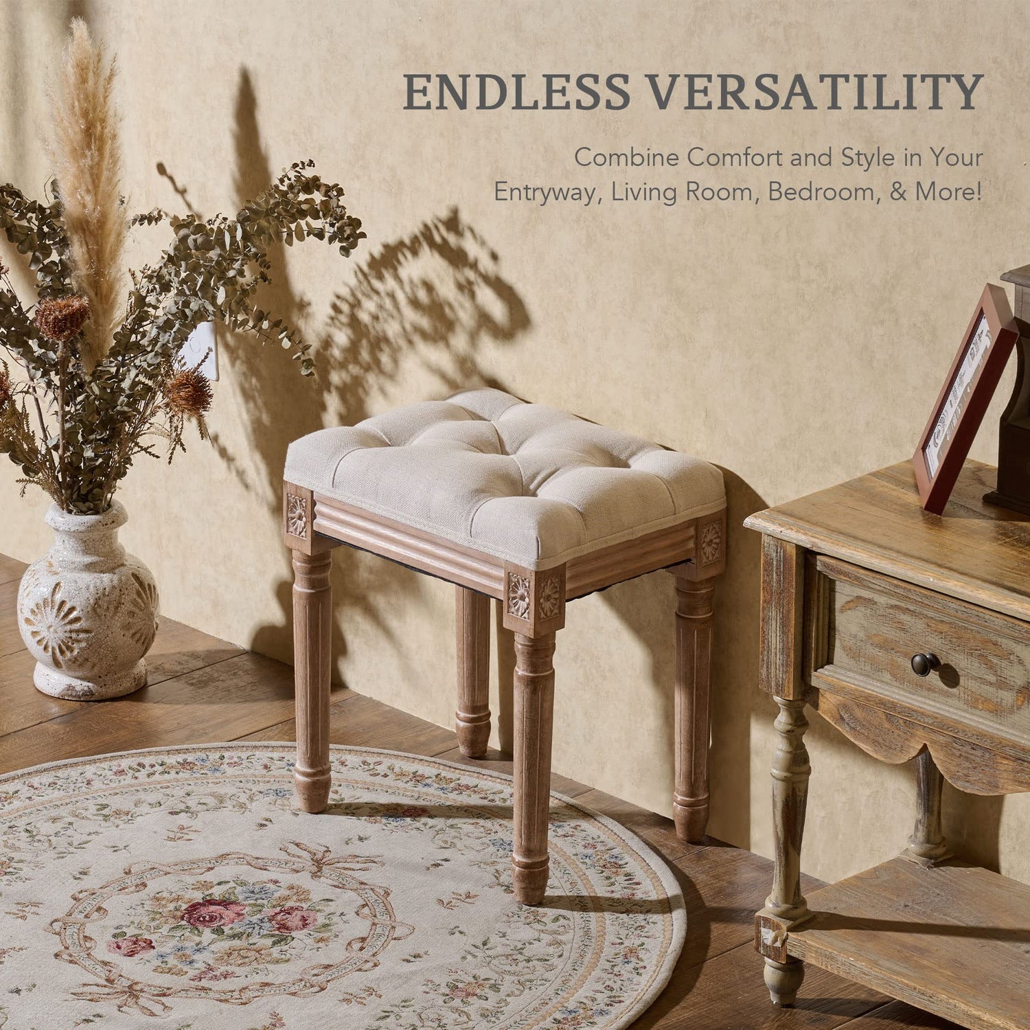 VONLUCE Ottoman Stool, 18.5 in High, Beige, with Padded Seat, Wood Frame, Button Tufted, for Dining, Living Room, Bedroom, Piano, Dressing, Vanity, Foot Rest