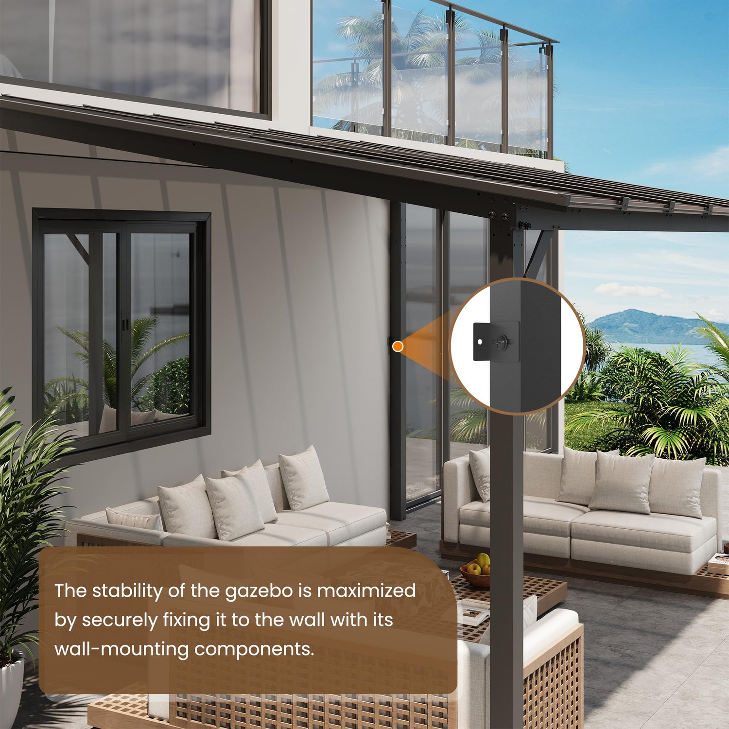 - Shipping & Service: Your wall mounted gazebo will be shipped in two separate boxes, which may arrive at different times. If you find that you've only received one box, please wait patiently as the other may arrive shortly. If you have any inquiries, we're available around the clock to assist you at your convenience.