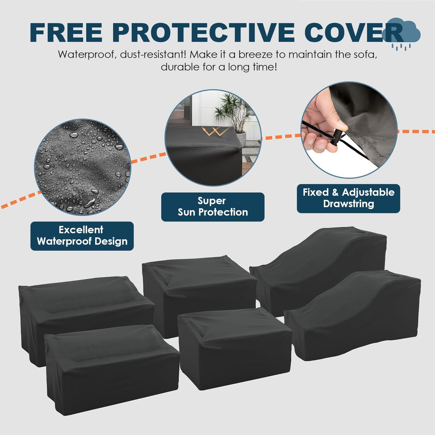 - 【Waterproof Cover Included】 Your patio sofa set now comes with a waterproof cover made from Oxford cloth. Enhanced with PVC coating on both inner and outer layers, it ensures superior waterproofing. Bid farewell to worries about your outdoor furniture set getting wet in the rain.