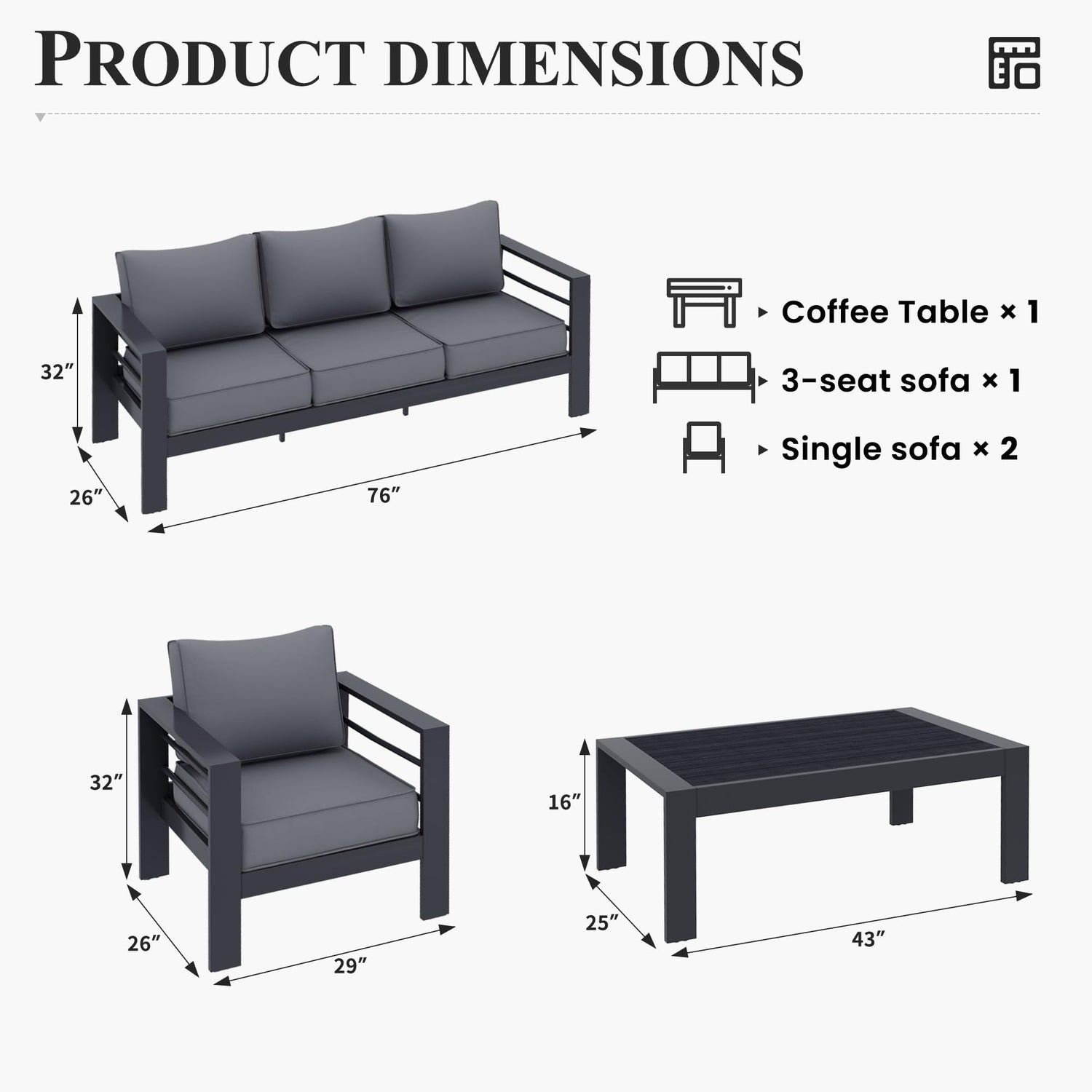 - ALL WEATHER USE: Vonzoy aluminum outdoor furniture adopts an all aluminum frame and thickened cushions, which are sturdy, durable, and lightweight. Aluminum furniture sets can resist fading, rust, and corrosion in all weather conditions, meeting your outdoor needs.