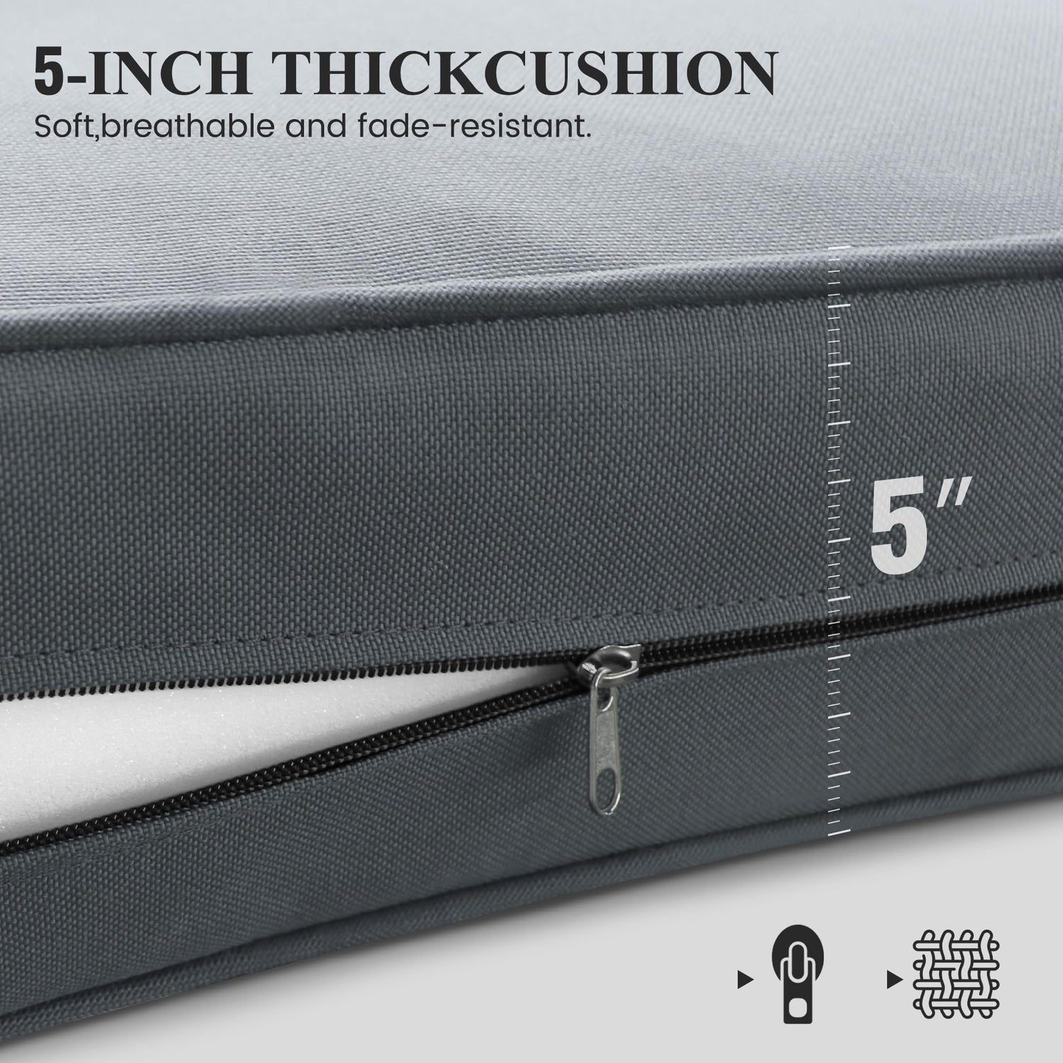 - 5 INCH SUPER CUSHION: Our metal patio furniture set 5-inch thick sofa cushion used high-density sponge is softer and breathable, has rebound force, which is not easy to collapse or deform. Olefin cover material is waterproofing and easy to clean. The removable cushion covers with zipper design makes cleaning convenient.