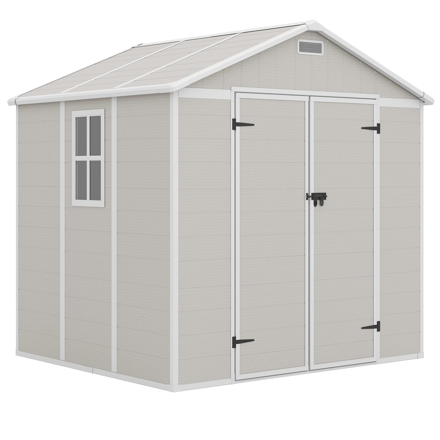 VONZOY Outdoor Storage Shed, 8x6 FT Resin Shed with Floor and Vents, Window & Lockable Door, Tool Sheds & Outdoor Storage for Bike, Tools, Garden Accessories, Waterproof (Sandstone)