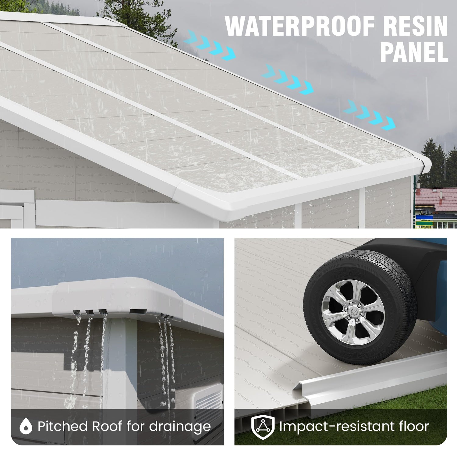 - [DOUBLE-WALL & STABLE STORAGE SHED]: Tough, double-wall resin construction and an impact-resistant floor are designed for long-term durability. The overlapping wall panels are water and moisture resistant for worry-free use in all weather conditions,Weather-resistant, waterproof and UV protected - will not peel, rot or rust.
