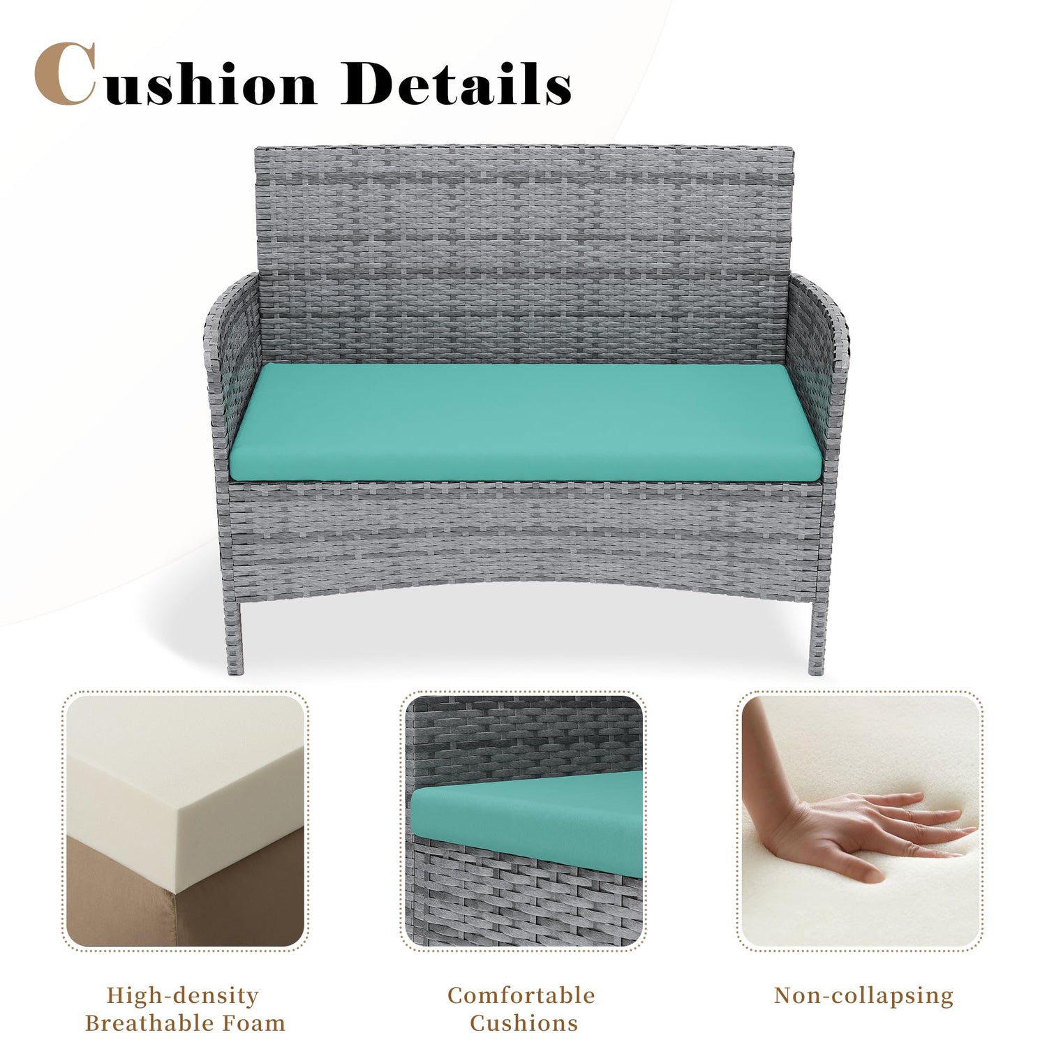 - Seat Cushions: The removable cushion cover have zipper, allowing you to make the machine washable cover looks new after a quick wash. Please take the cushions indoor when not in use to prevent cushion from being damaged by the rain