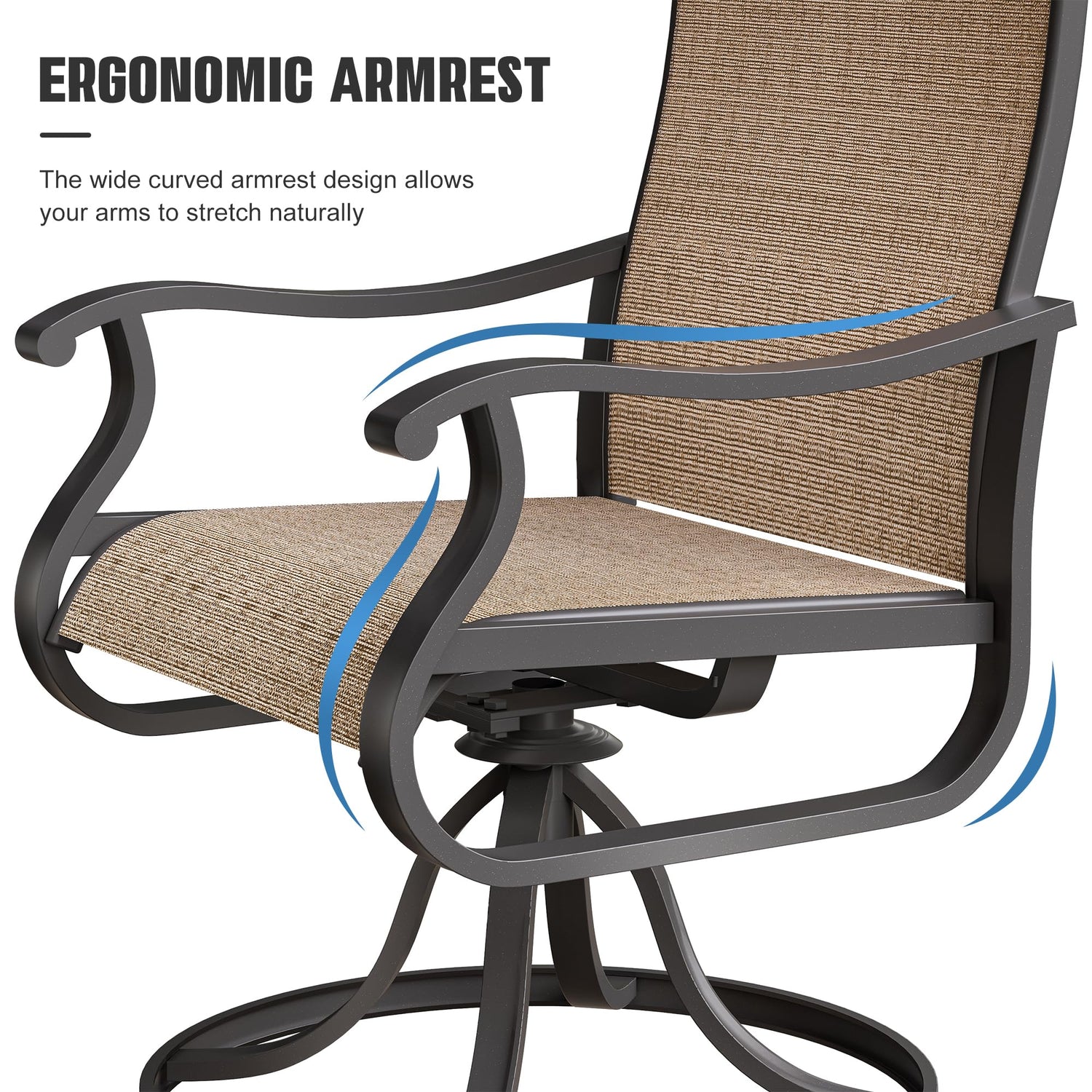VONZOY Patio Swivel Chairs Set of 2, Outdoor Dining Chairs with High Back, All-Weather Swivel Rocker Chair for Lawn, Porch or Garden (Brown)
