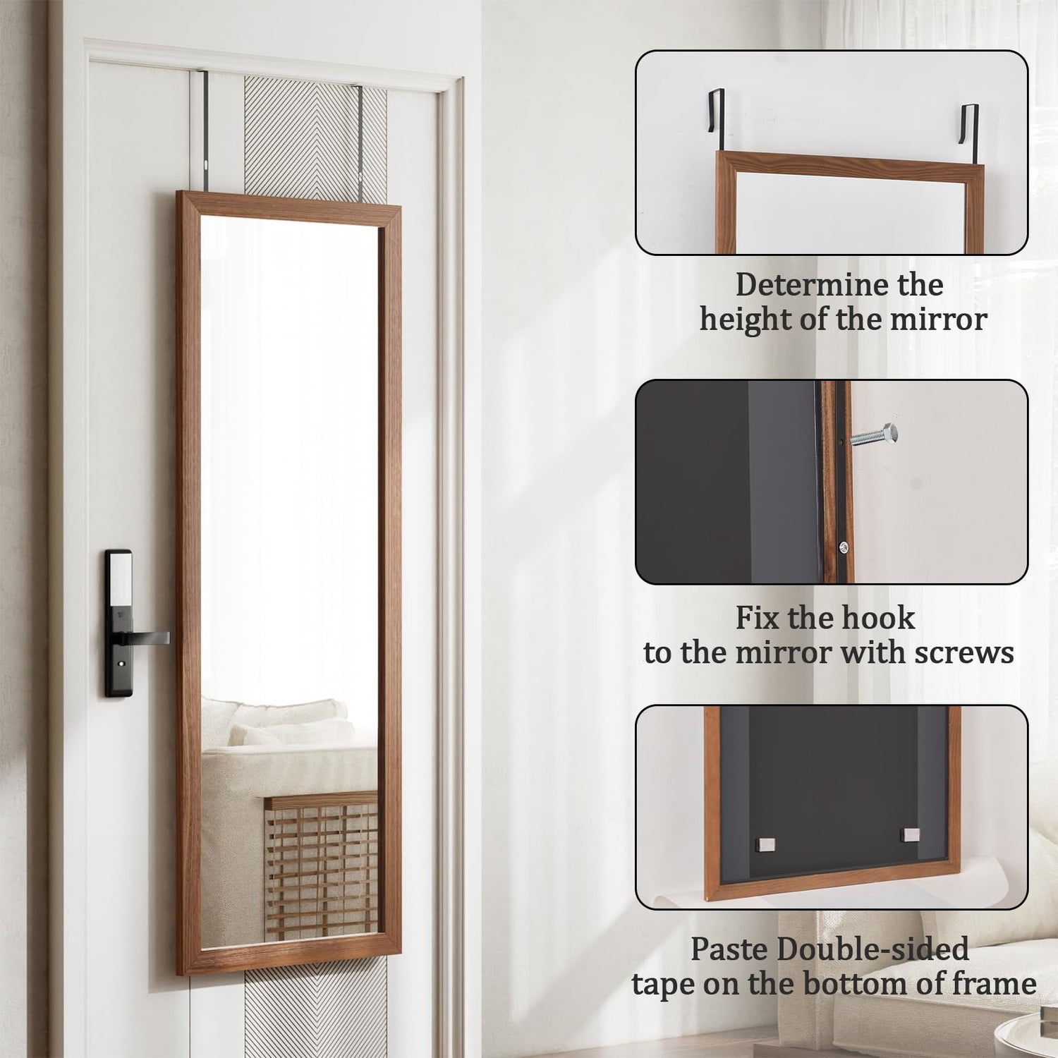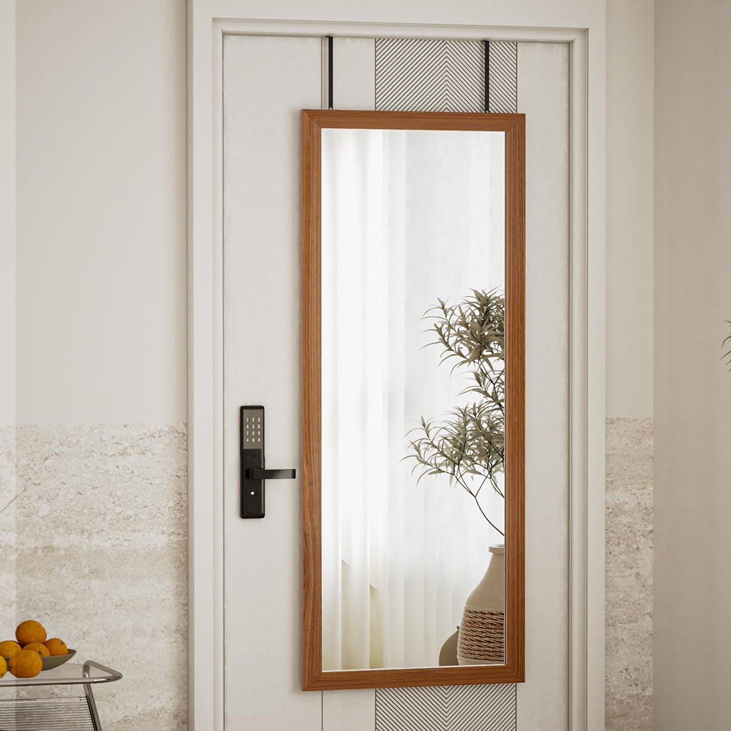 VooBang Wood Frame Door Mirror, 18" x 48" Over The Door Mirror Full Length, Full Body Mirror Door Hanging with Height-Adjustable Hangers for Dorm, Closet and Dressing Room, Charcoal Burnt