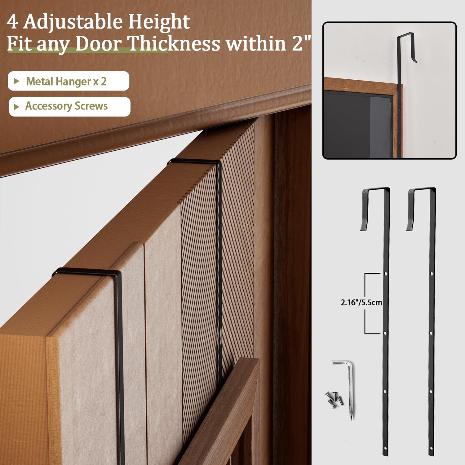 - Height-adjustable Hooks: There are 4 holes on the hook, the holes are about 2" apart, you can choose the mounting holes according to the height you need. Simply install the screws into the corresponding holes on the frame and hook to complete