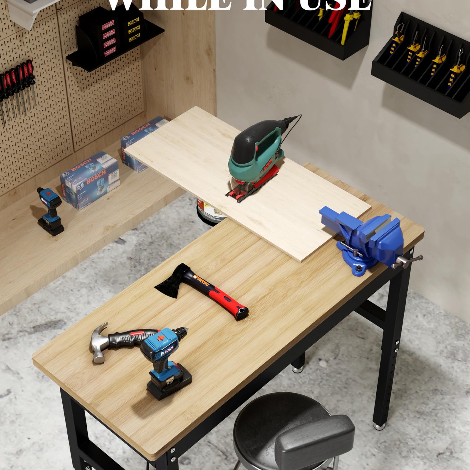 - Versatile Height Adjustment: Designed with a workspace of 60" x 20", this workbench offers height adjustments ranging from 25.2" to 39.4" across 10 different settings, allowing you to customize the height for your chair or specific project requirements