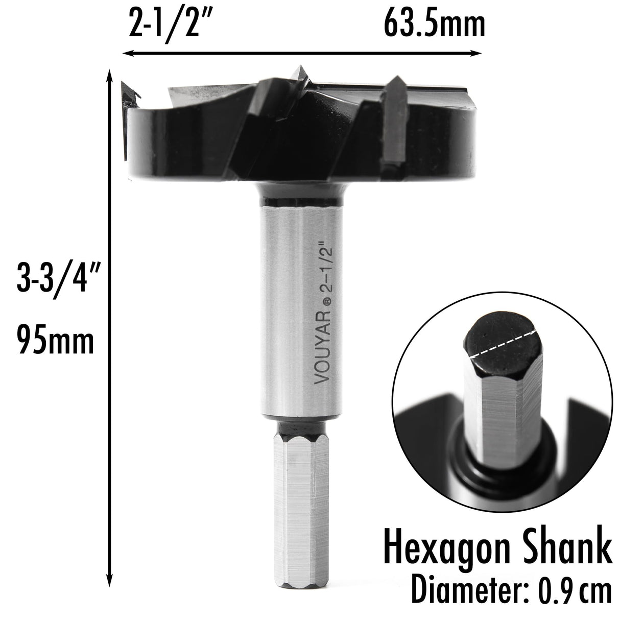 Vouyar 2-1/2 Inch Forstner Drill Bit, Triple-Flute Carbide Tipped Forstner Bit for Hard Wood, Soft Wood, Veneered Plywood, Plastic, Drilling Hole Saw