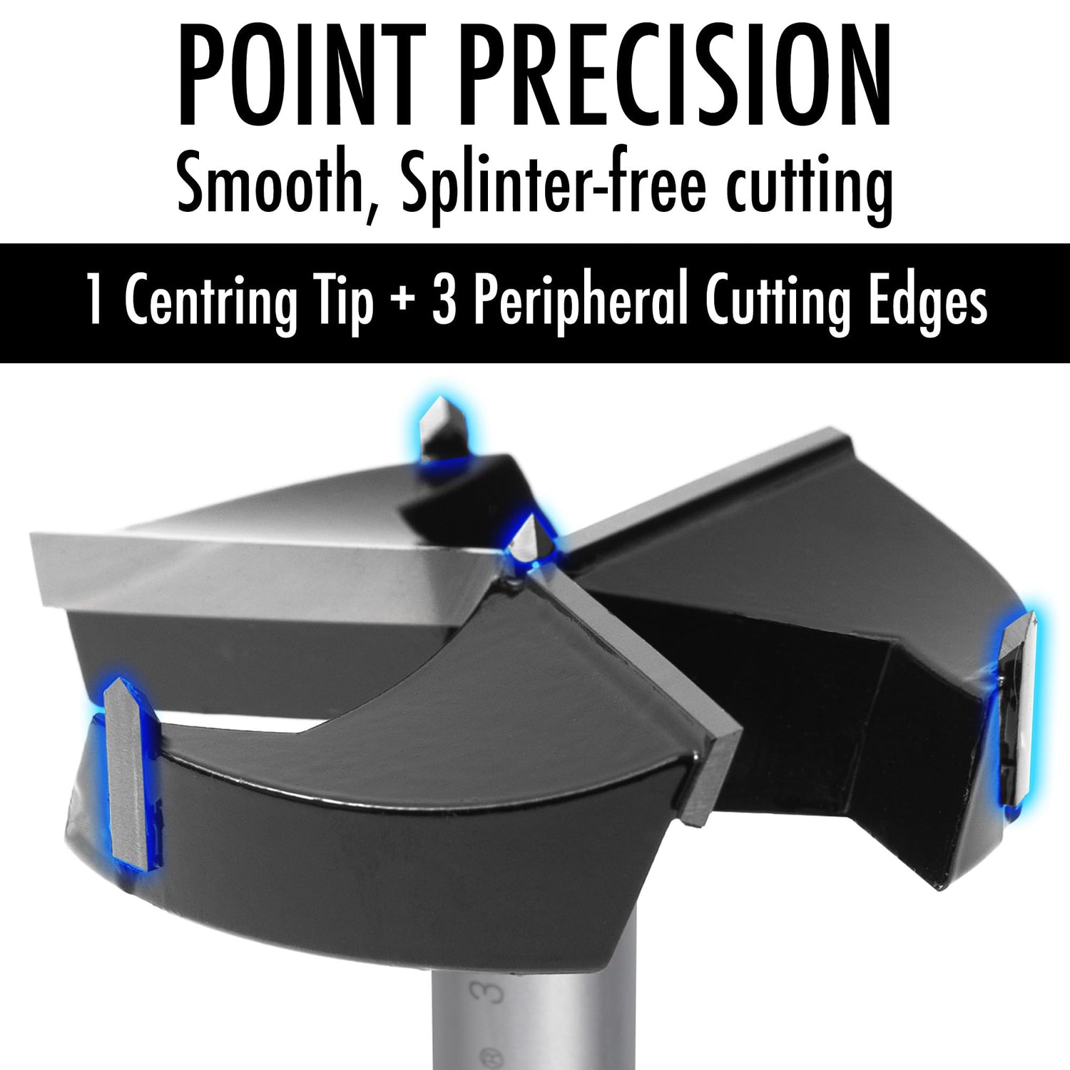 - Point-precision: 1 centring tip with 3 peripheral cutting edges locate the centre of the hole with ease, prevents the bit from wandering around. Ensure consistent and accurate results.