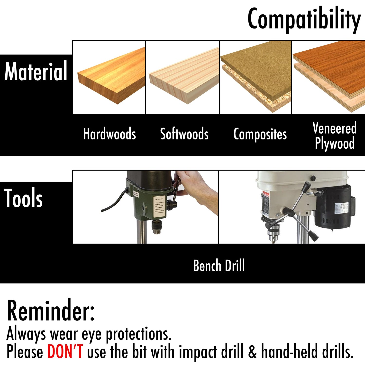 - Reminder: We recommend using the drill with bench drill for stability. Please wear eye protection at all time. Please DO NOT use the bit with impact driver or hand-held drills.