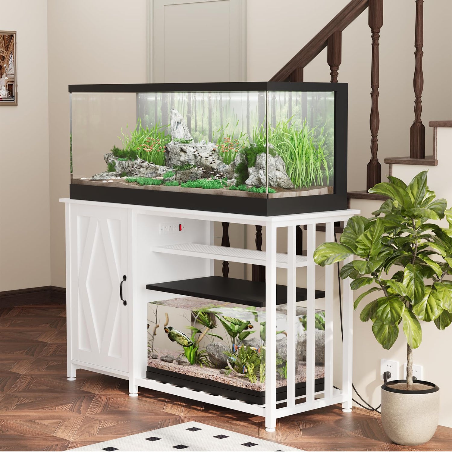 - For 55-75 Gallon Aquariums: With a space-saving 2-in-1 design, our fish tank stand with cabinet can hold a large 55-75 gallon aquarium on the top. And the bottom space is also for you to place small 10-29 gallon terrariums or fish tank kits