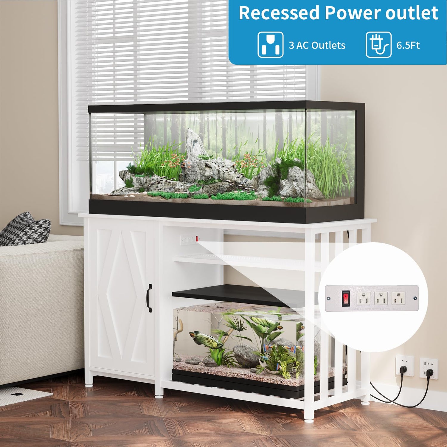 VOWNER 55-75 Gallon Fish Tank Stand, Aquarium Stand with Power Outlets, Cabinet for Fish Tank Accessories Storage, Heavy Duty Metal Frame, Suitable for Fish Tank, Turtle Tank, 1200LBS Capacity, White