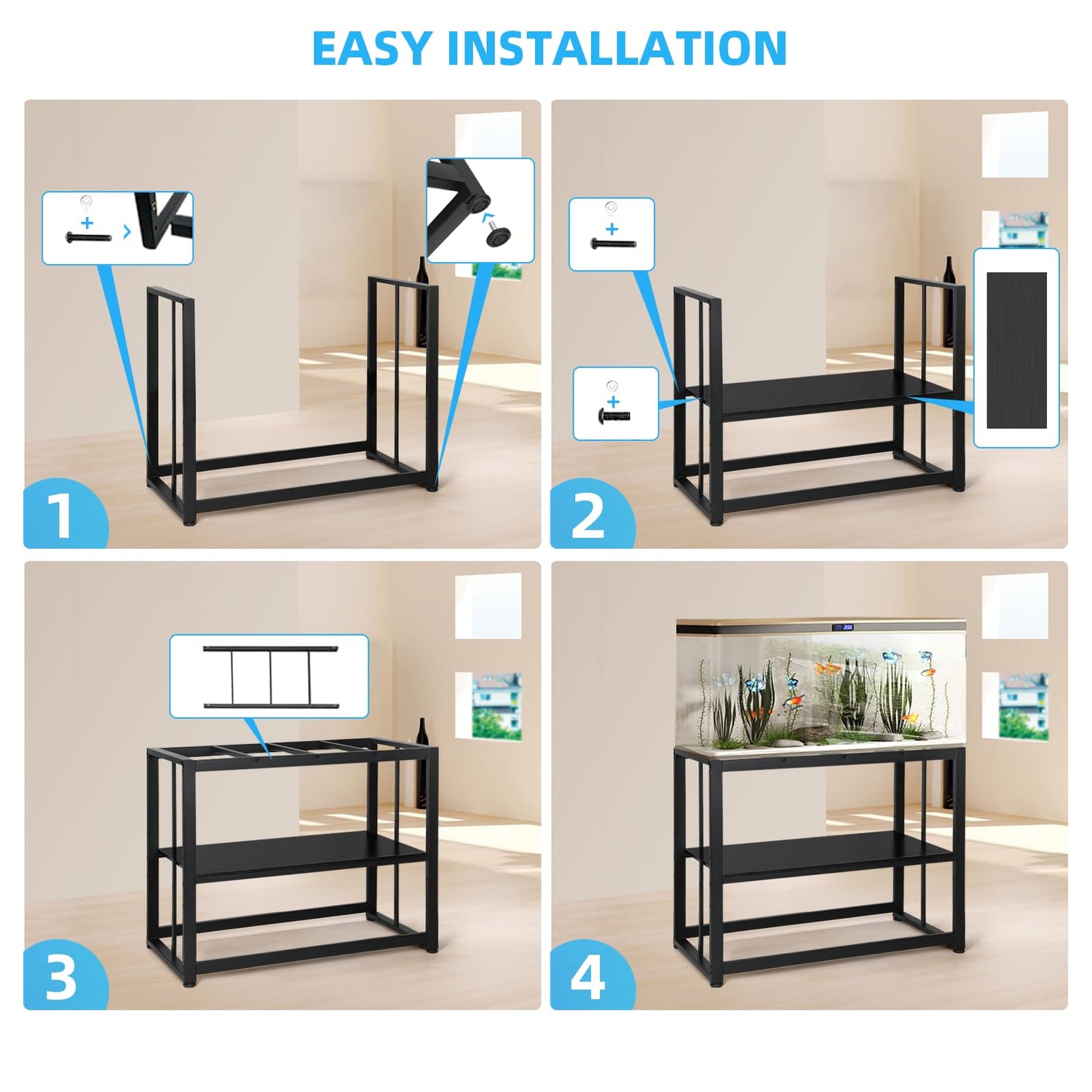- Strong Support: Our fish tank stand is made with 4 cm thick heavy-duty steel frames, and support force up to 600lb, never worry about wobbling. With powder coating, it is rust and moisture-proof, really strong and durable