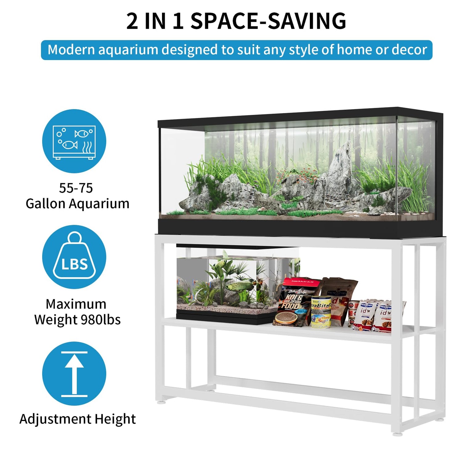 VOWNER 55-75 Gallon Fish Tank Stand - Metal Aquarium Stand, 48.4" x 14.9" x 29.5" Heavy Duty Reptile Tank Stand, Adjustable 2-Tier Fish Tank Rack Shelf for Home Office, Tank not Included, White
