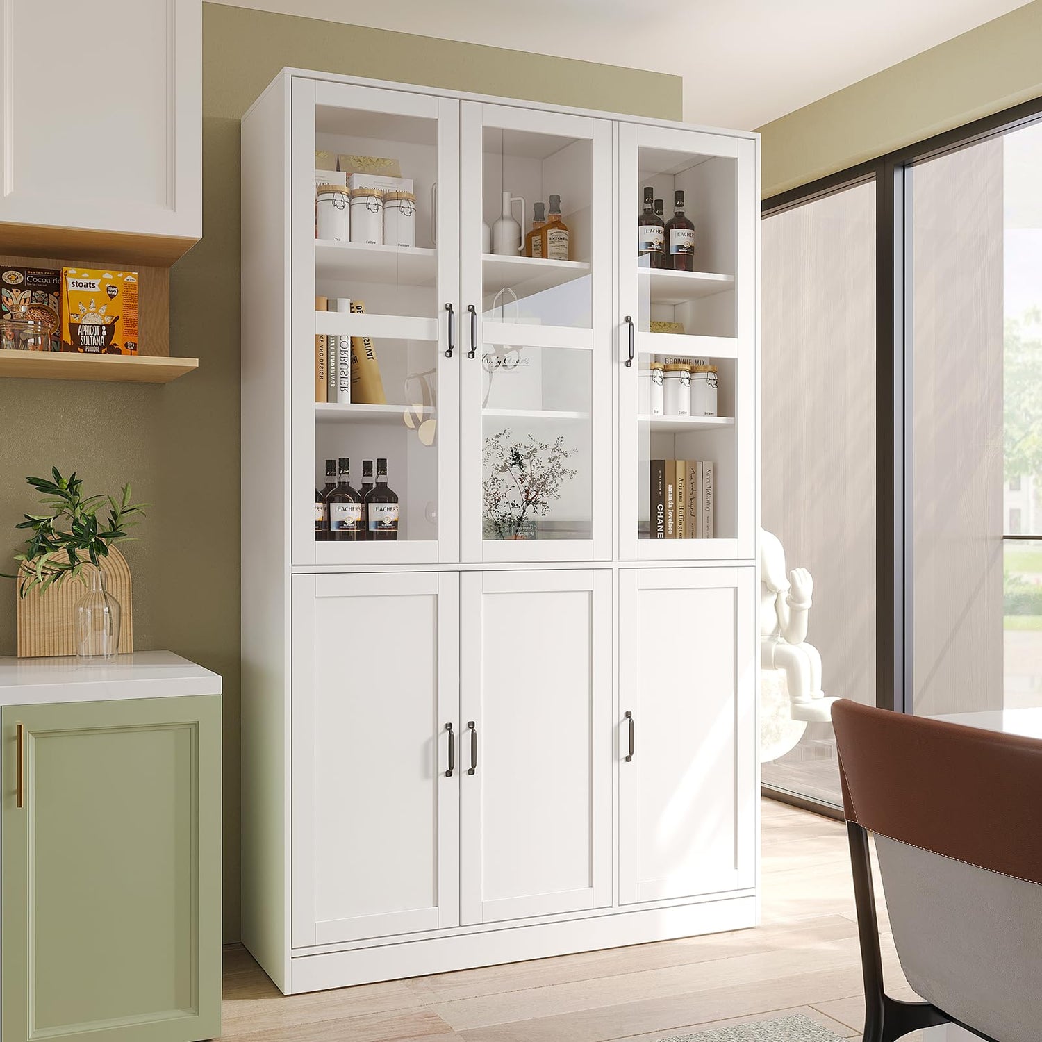 - 【Multi-functional Scenario】The bookcase has a versatile design and a variety of storage options, with glass doors and door shelves to help you easily access documents and office supplies. It is perfect for living rooms, bedrooms, study rooms, kitchens, garages, reception rooms and offices, etc.