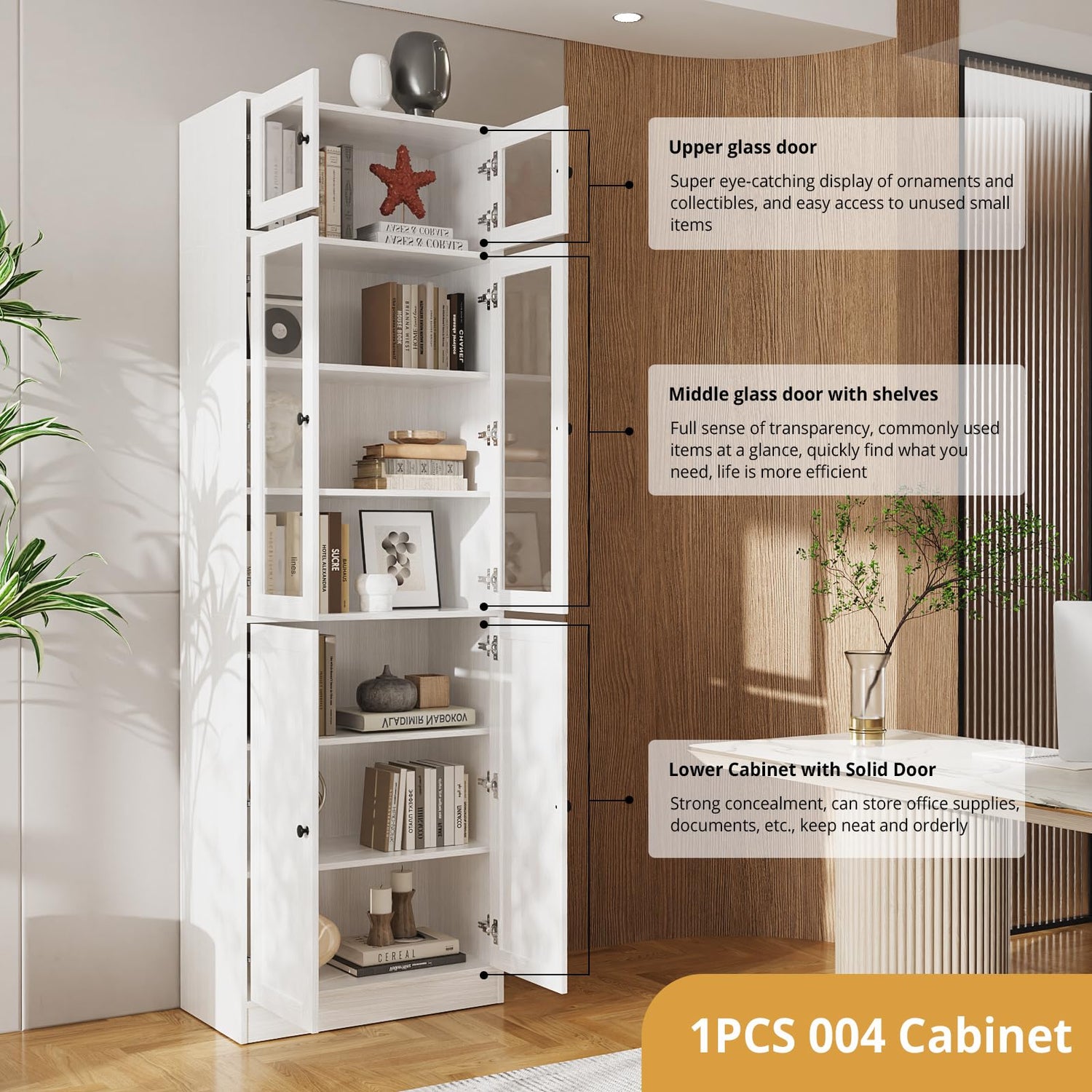 - [Versatile Placement Options]:Ideal for use as a living room display cabinet, home office bookcase, kitchen storage unit or garage organizer. The neutral white finish complements contemporary, Scandinavian minimalist and farmhouse decors.