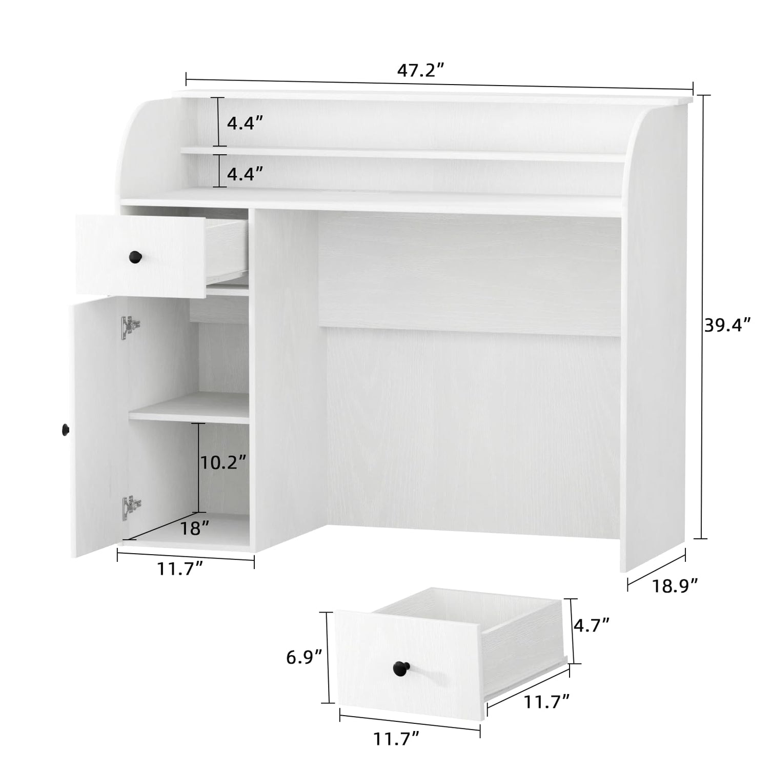 - [SMART, SPACIOUS DESIGN]: This desk isn’t just stylish—it’s built for efficiency. The 47.2" x 18.9" x 39.4" desktop offers plenty of space for computers, cash registers, or promotional displays. Keep files, folders and supplies neat and orderly with ease.
