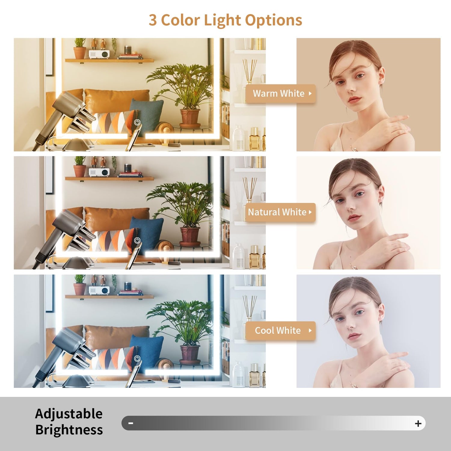 - Bright and Adjustable Lighting: This vanity desk comes with bright built-in LED light, offering 3 color temperature modes and adjustable brightness for your daily makeup routine.