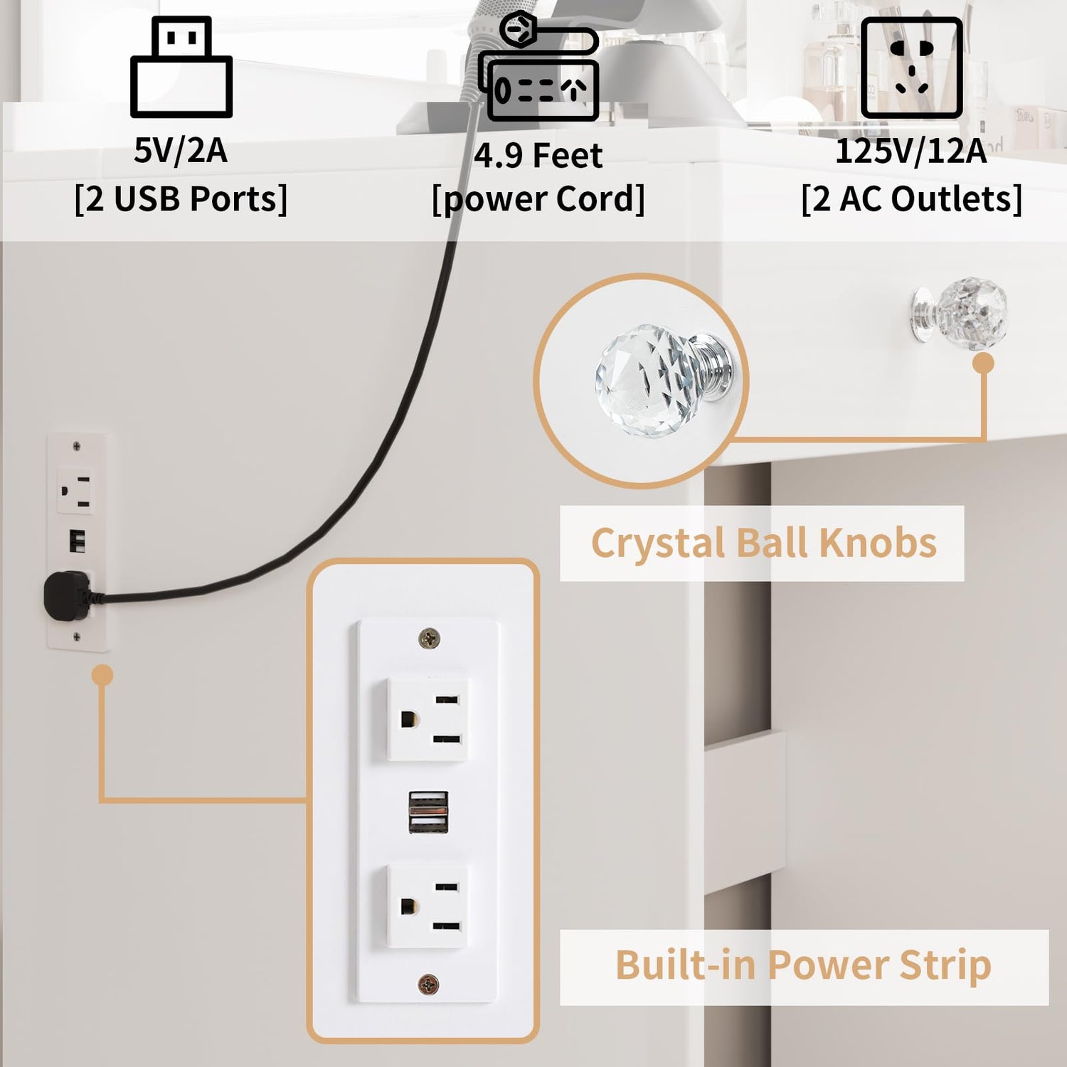 - Built-in Power Outlet: Simplify your beauty routine with the equipped 2 standard plug sockets and 2 USB ports. Easily charge your hair dryers, curling irons, beauty devices, and phones, keeping them within reach while getting ready.