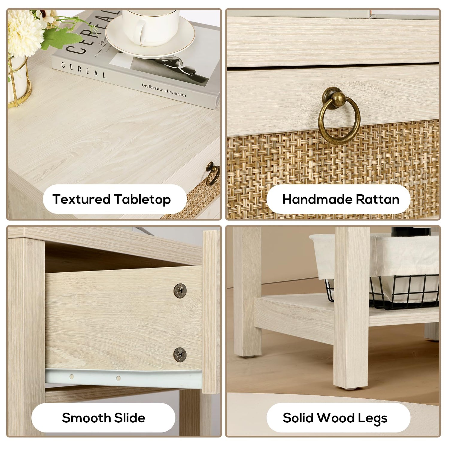 - BOHEMIAN CHIC DESIGN: This rattan nightstand set features an eye-catching woven texture that adds a touch of bohemian charm. The rattan-accented drawer fronts with vintage metal pulls are perfect for farmhouse, coastal or bohemian-themed interiors.