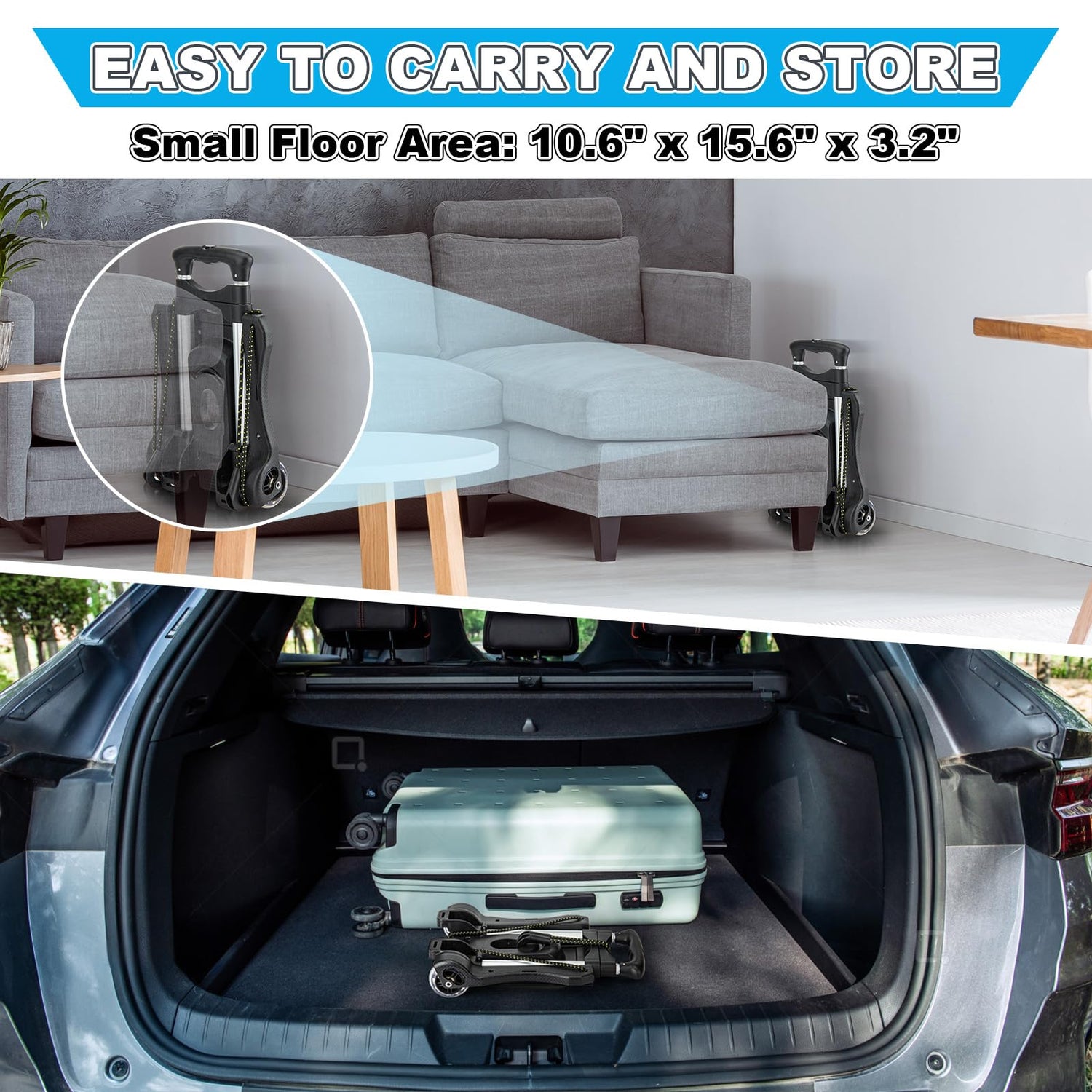 - 【Wide Application】This small dolly for cart will make your life easier. It's portable, easy to store, and easy to carry in your car, or truck. You always have the hand cart with you in your car to move anything that is heavy. Perfect for luggage, moving, airport, travel. You're super happy with it.