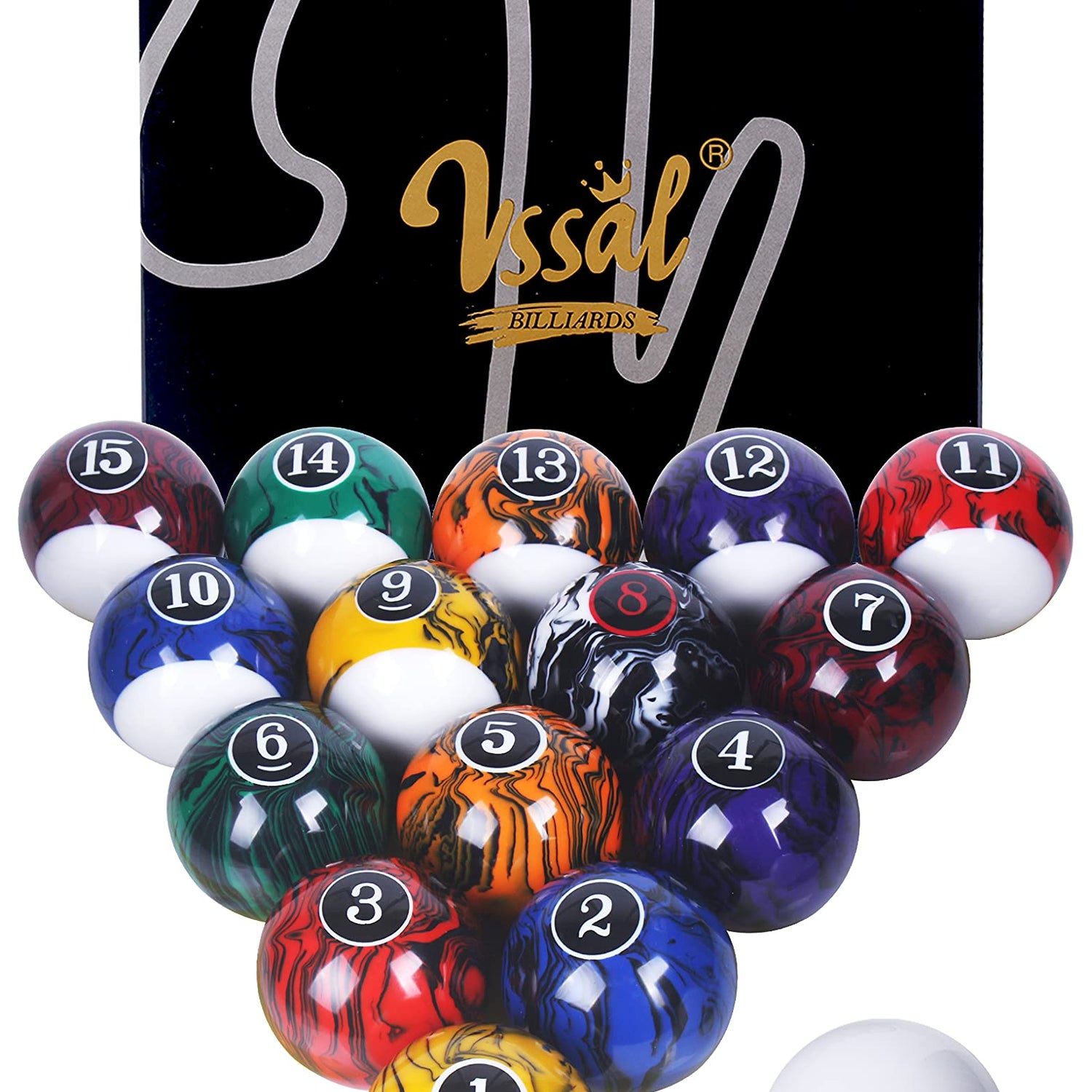 VSSAL Billiard Balls Set Pool Table Balls Marble-Swirl Style 16 Ball Set