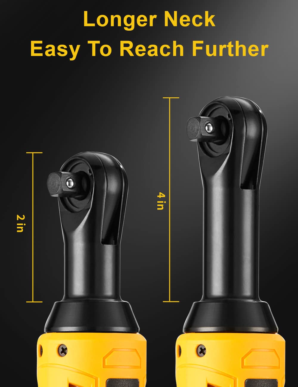 - 【Extended Head】This Power Ratchet Wrench offers 4" long neck and 3/8" compact head makes it easy to reach any tiny and narrow working environments.Compared to other short head ratchet wrenches, it can protect your knuckles effectively