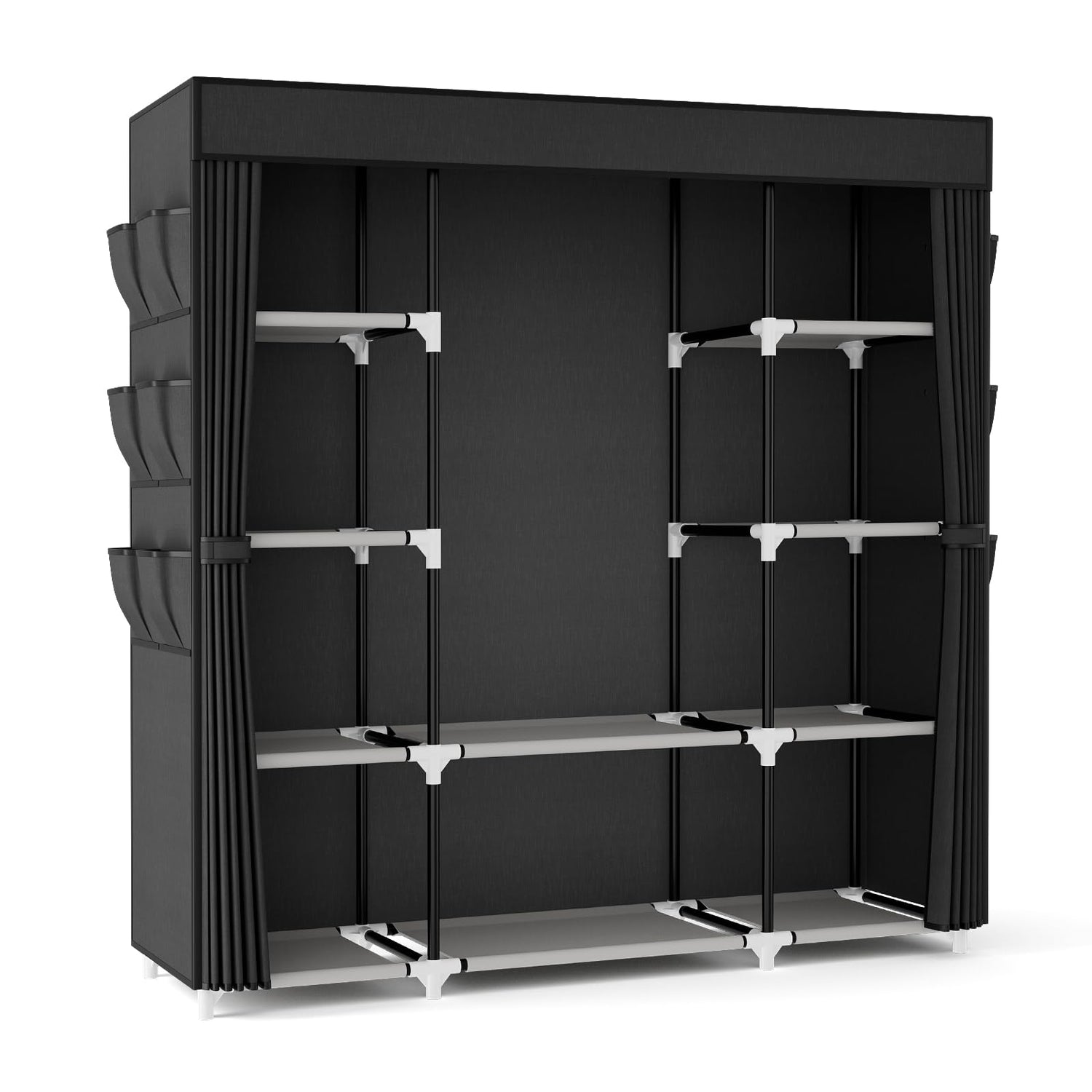 VTRIN Portable Closet Wardrobe for Hanging Clothes 57.3 Inch Large Capacity Clothes Rack with Cover, 10 Storage Organizer Shelves, 1 Hanging Rods and 6 Pockets, Free Standing Closet for Bedroom, Black